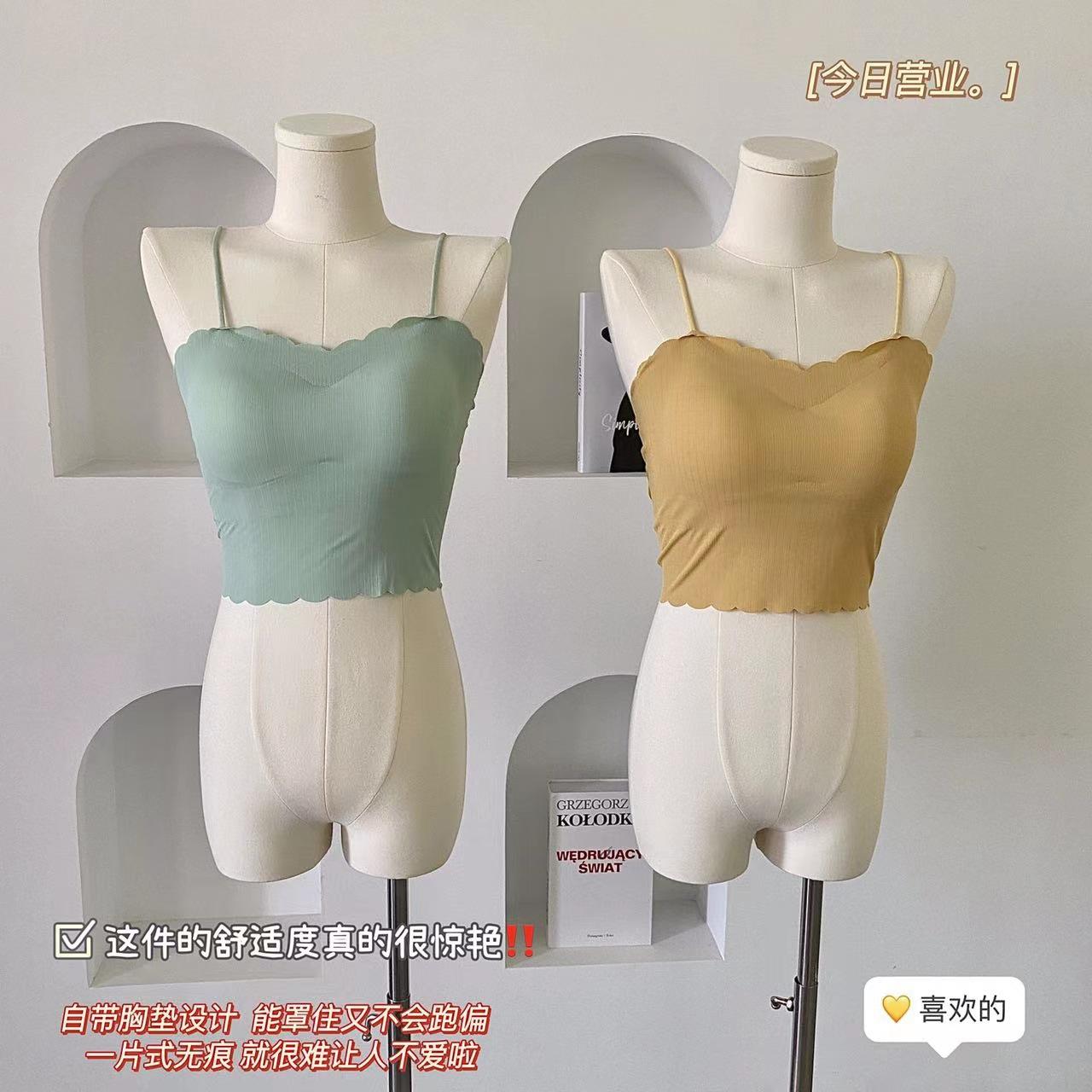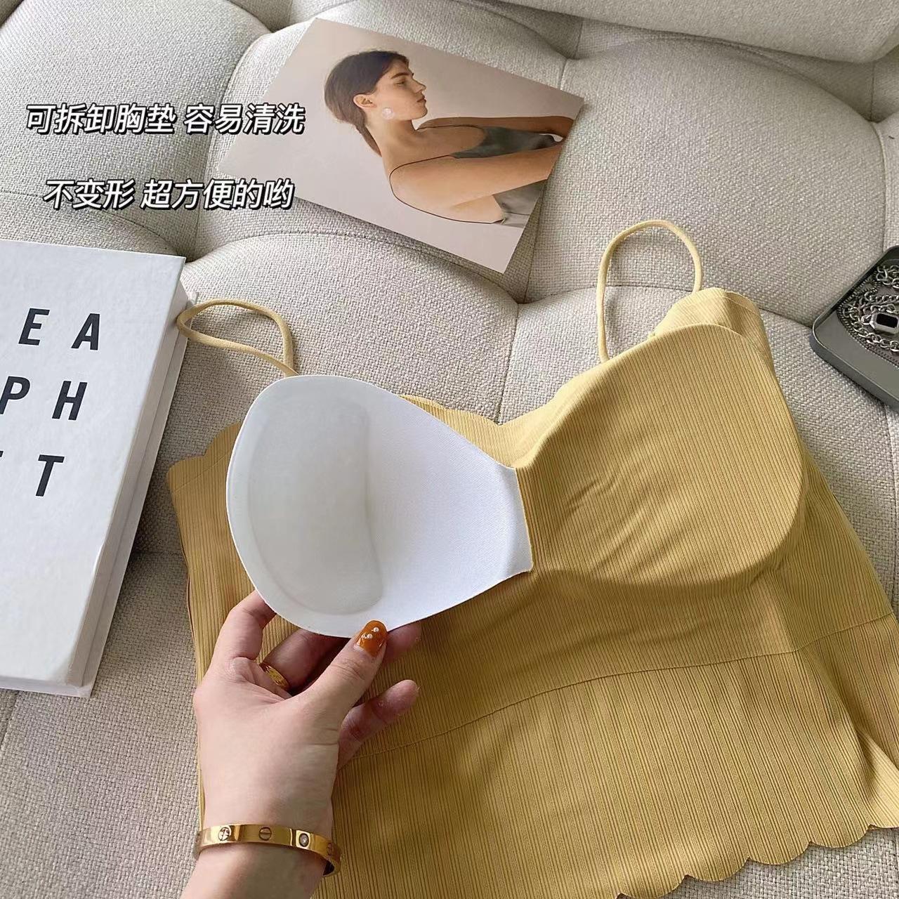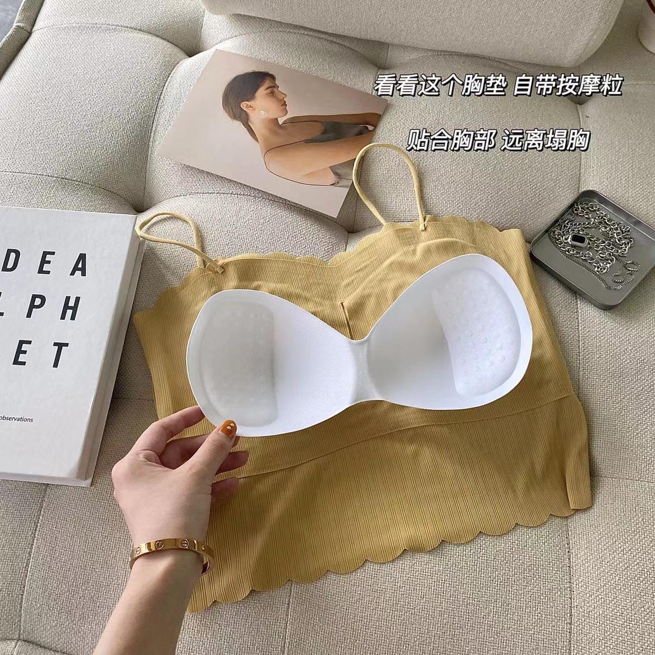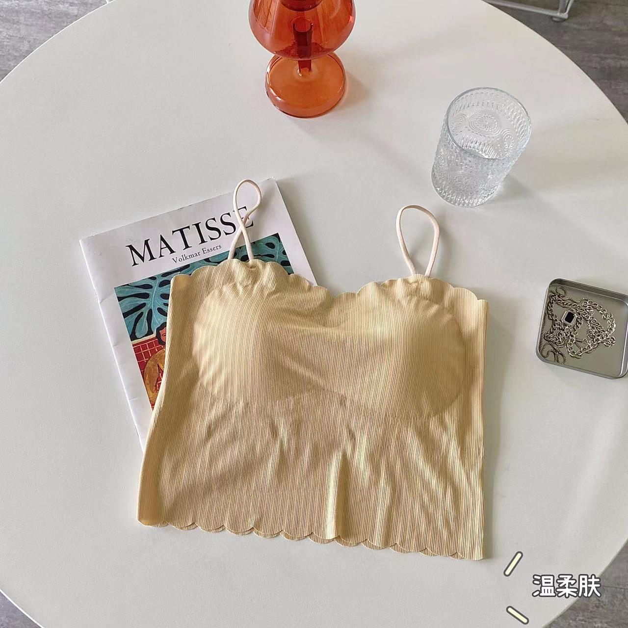 Camisola de seda de hielo sin marcas para mujer, con espalda hermosa, tirantes finos, transpirable, ligera y antideslizamiento, con almohadilla para el pecho.