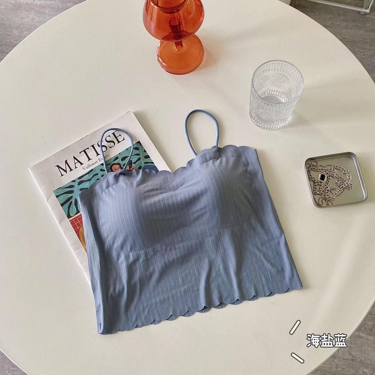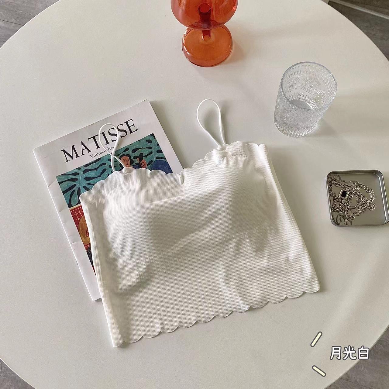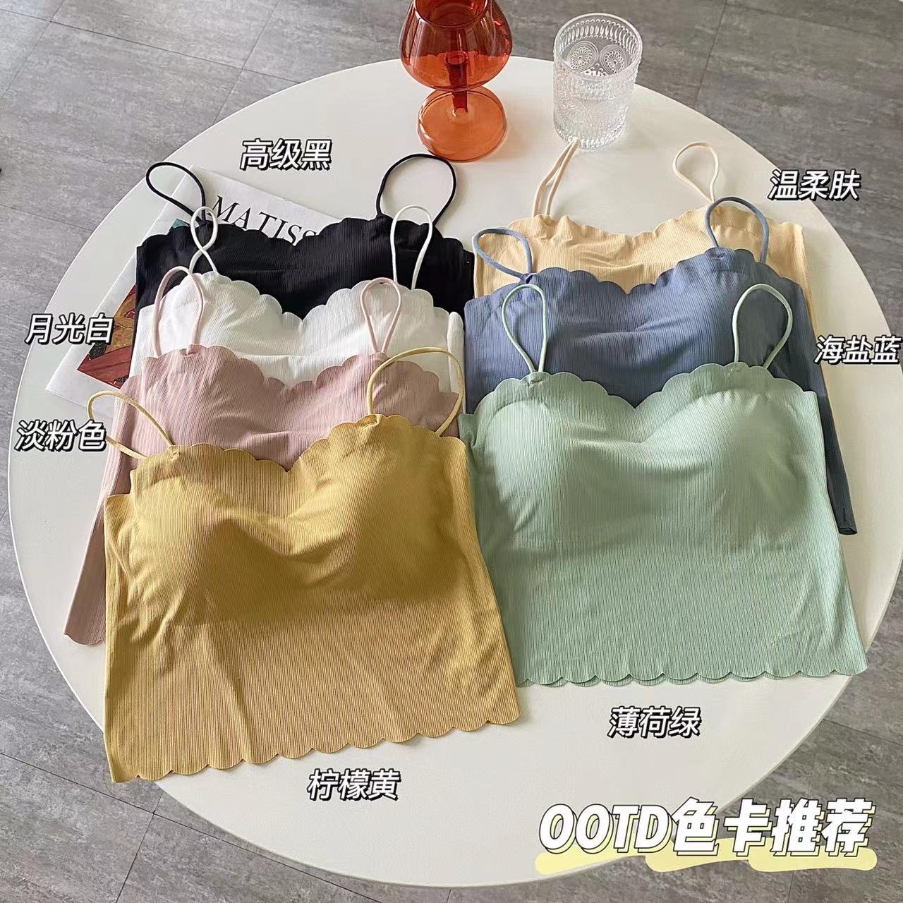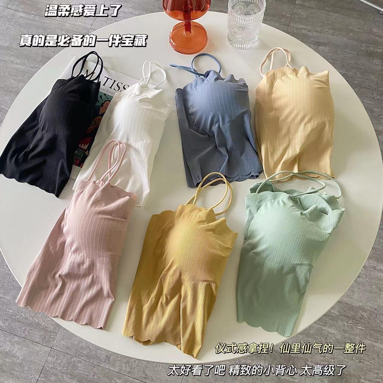 Camisola de seda de hielo sin marcas para mujer, con espalda hermosa, tirantes finos, transpirable, ligera y antideslizamiento, con almohadilla para el pecho.