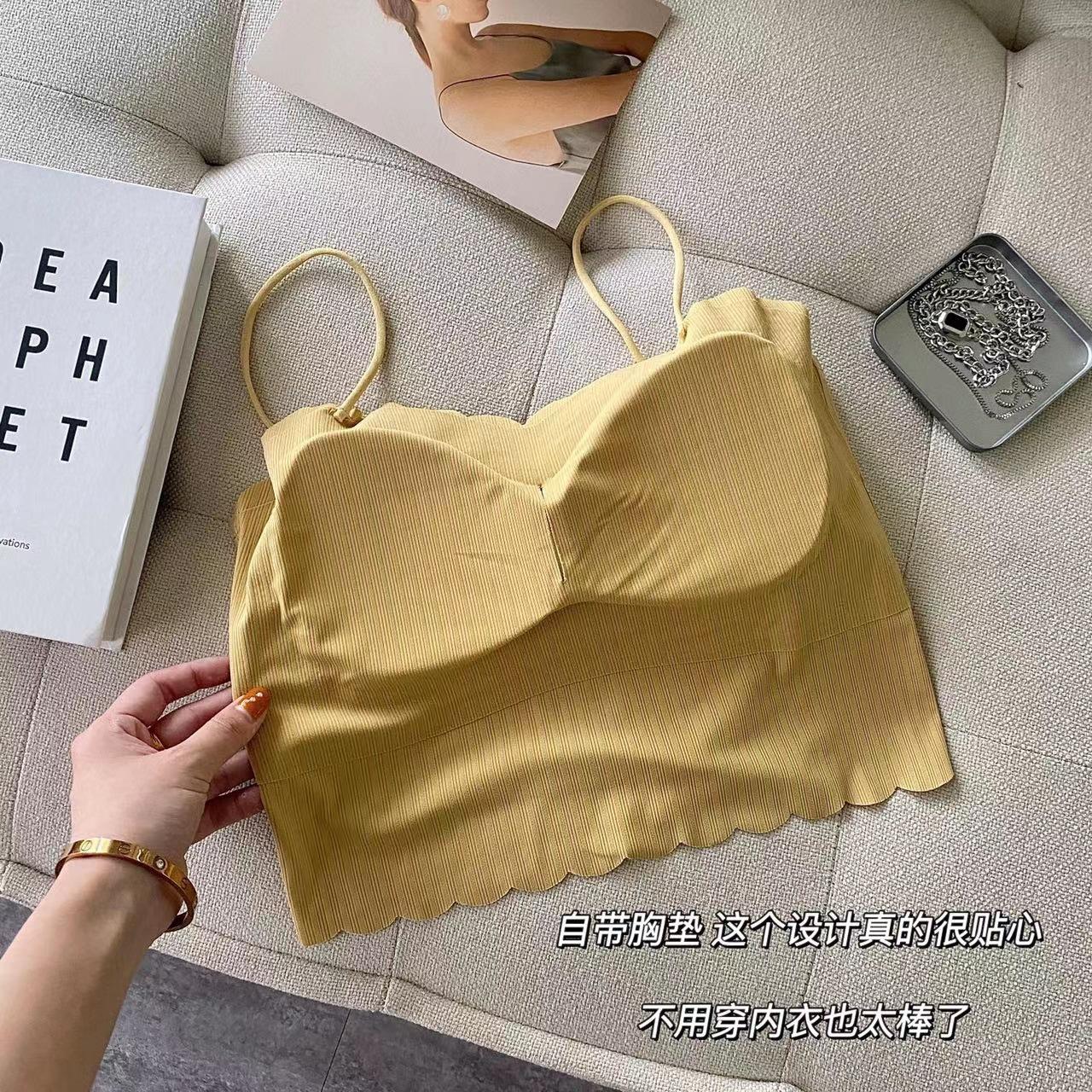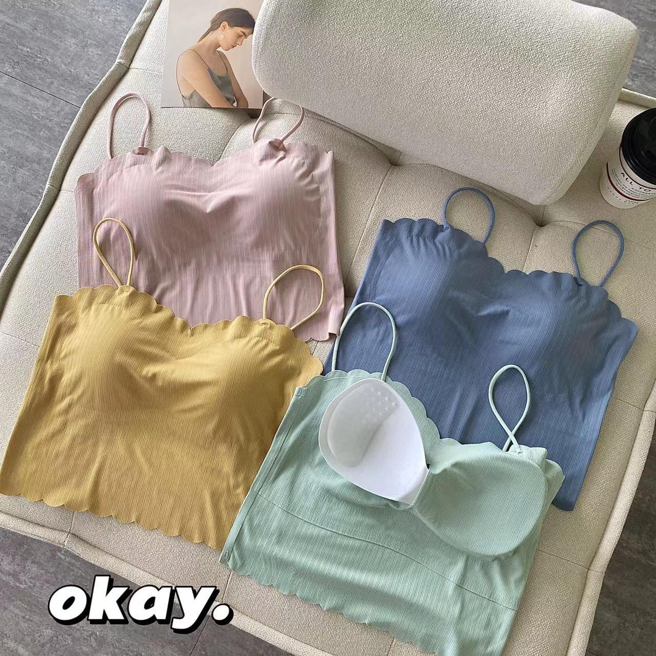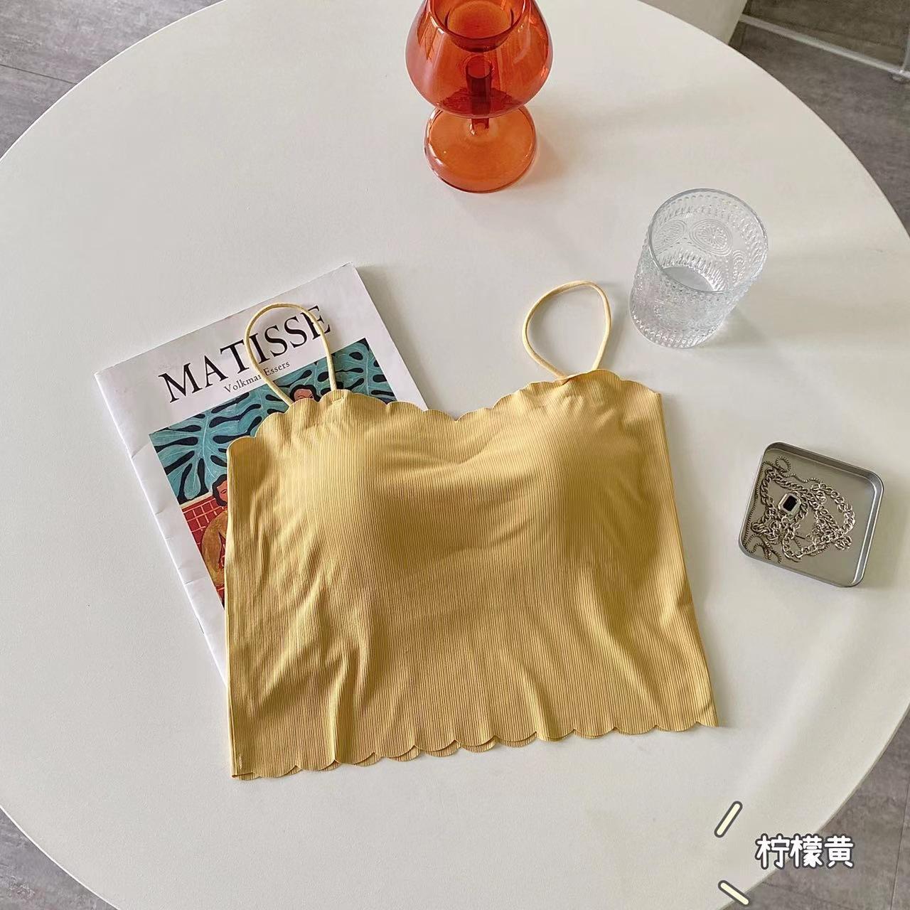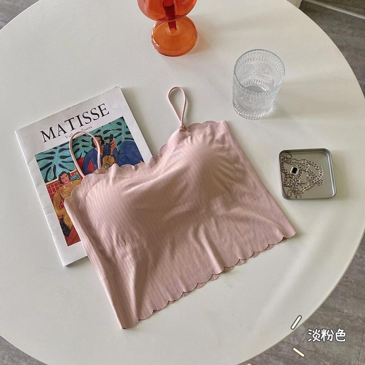 Camisola de seda de hielo sin marcas para mujer, con espalda hermosa, tirantes finos, transpirable, ligera y antideslizamiento, con almohadilla para el pecho.