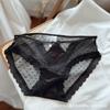 | Venta directa de fábrica de ropa interior de mujer de talla grande de encaje transparente sexy europeo y americano, calzoncillos finos de cintura media y baja |