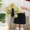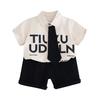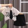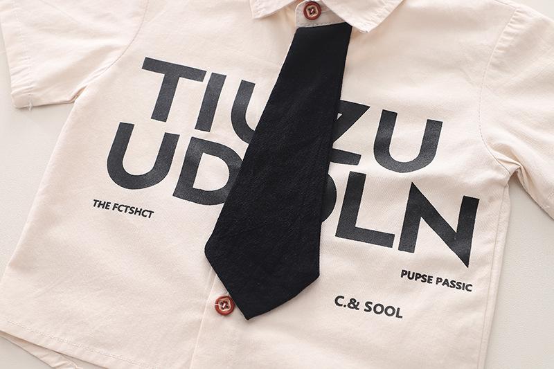 Traje de verano de manga corta para niños Nuevo vestido de verano para niños Camisa de estilo occidental para niños Ropa fina de dos piezas para bebés y niños de moda