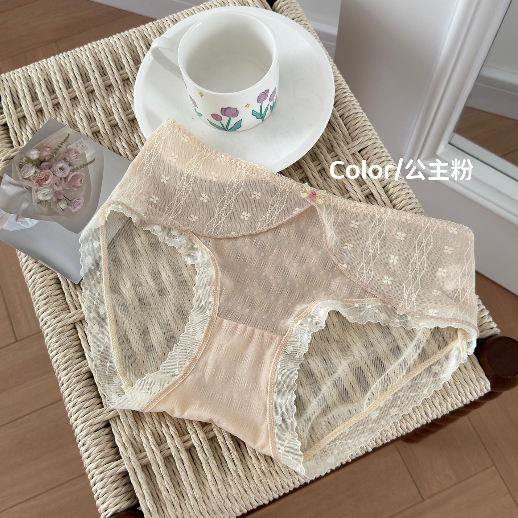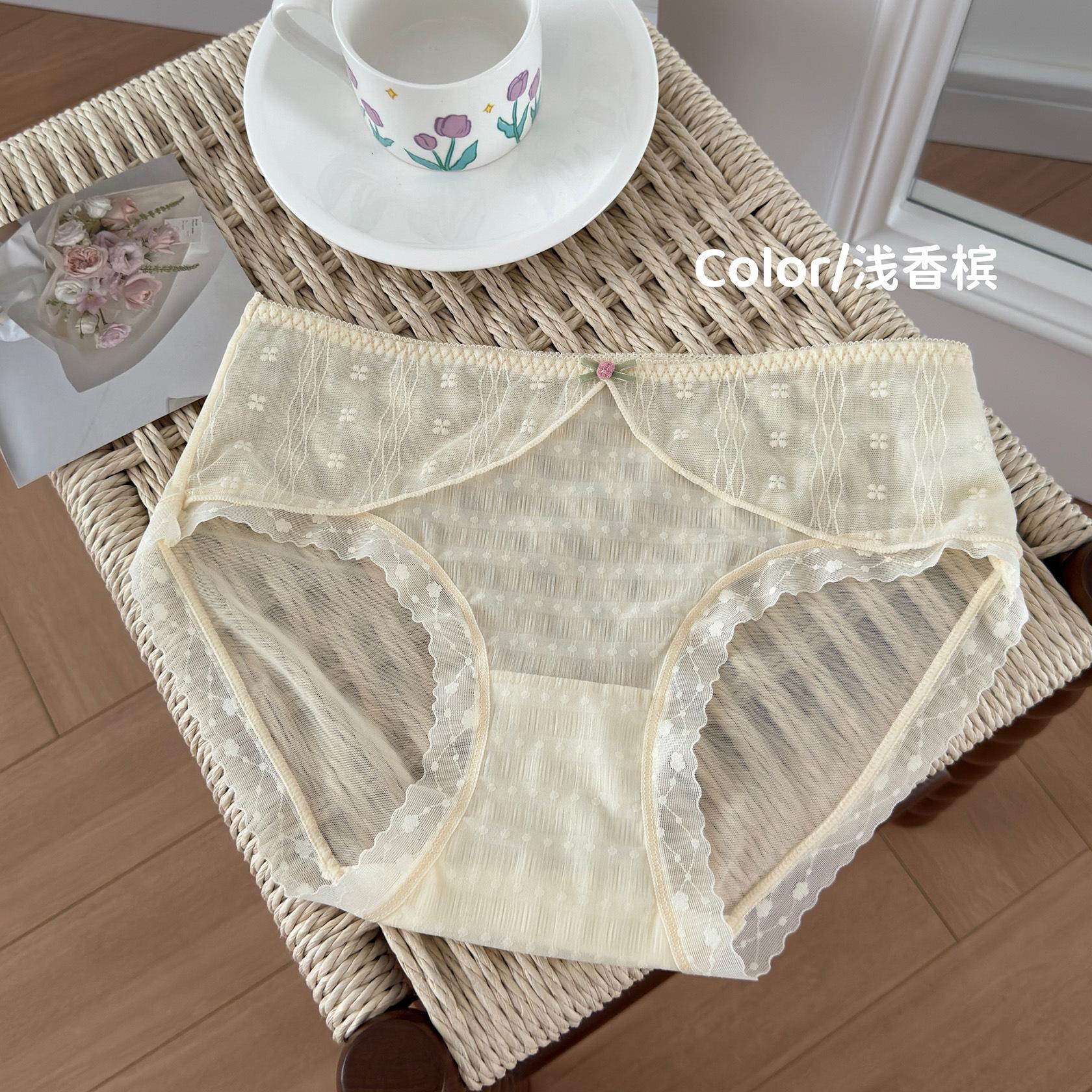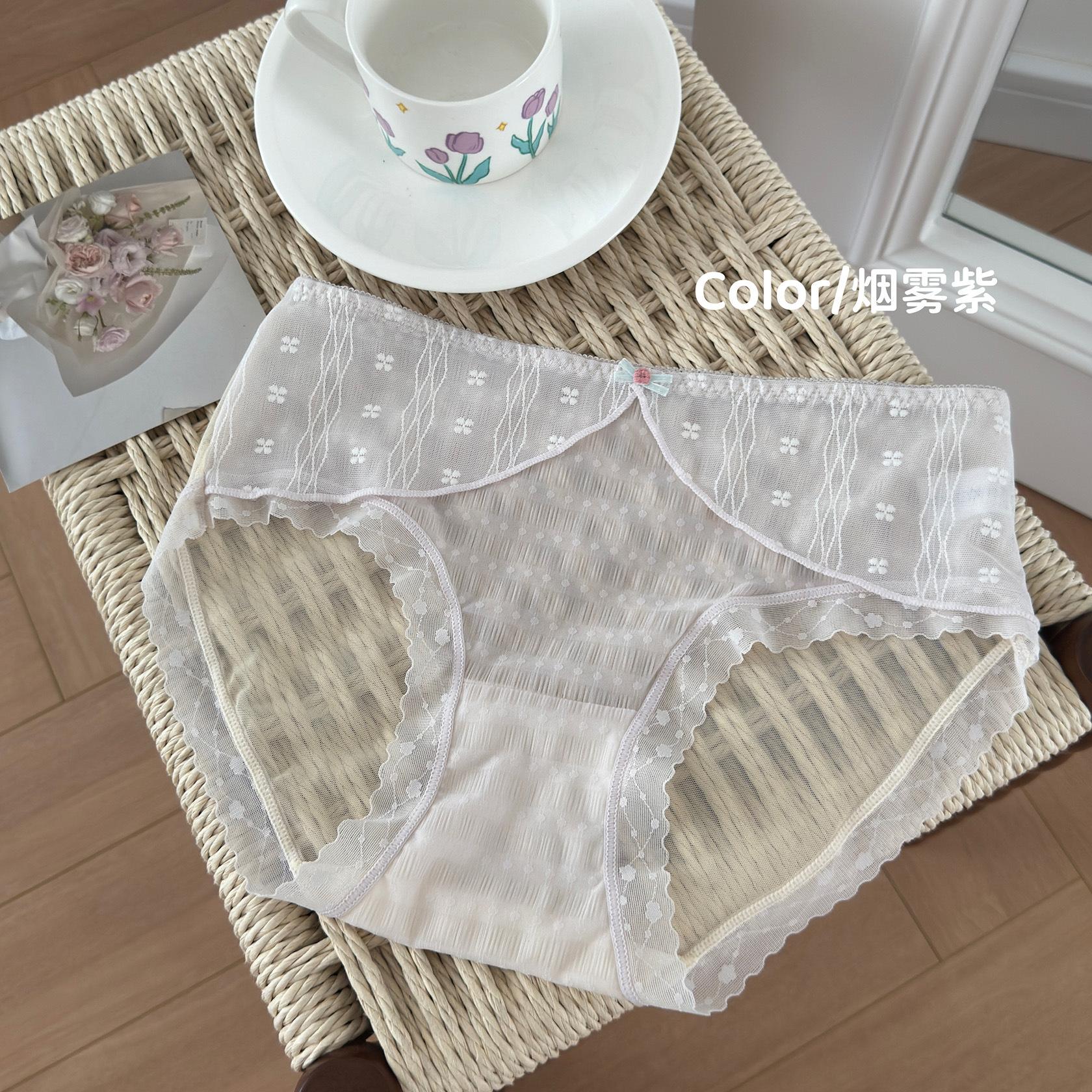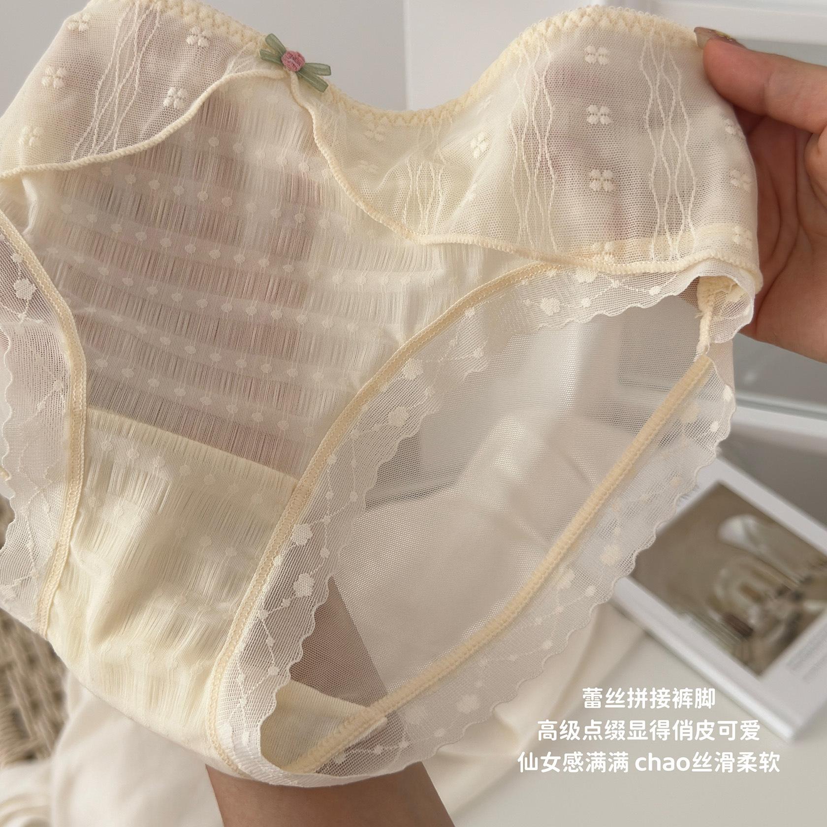 Ropa interior de encaje estilo francés Pure Desire para niña, con ondas de burbujas, malla de lunares, transpirable, sexy, dulce, antibacteriana, de cintura media.