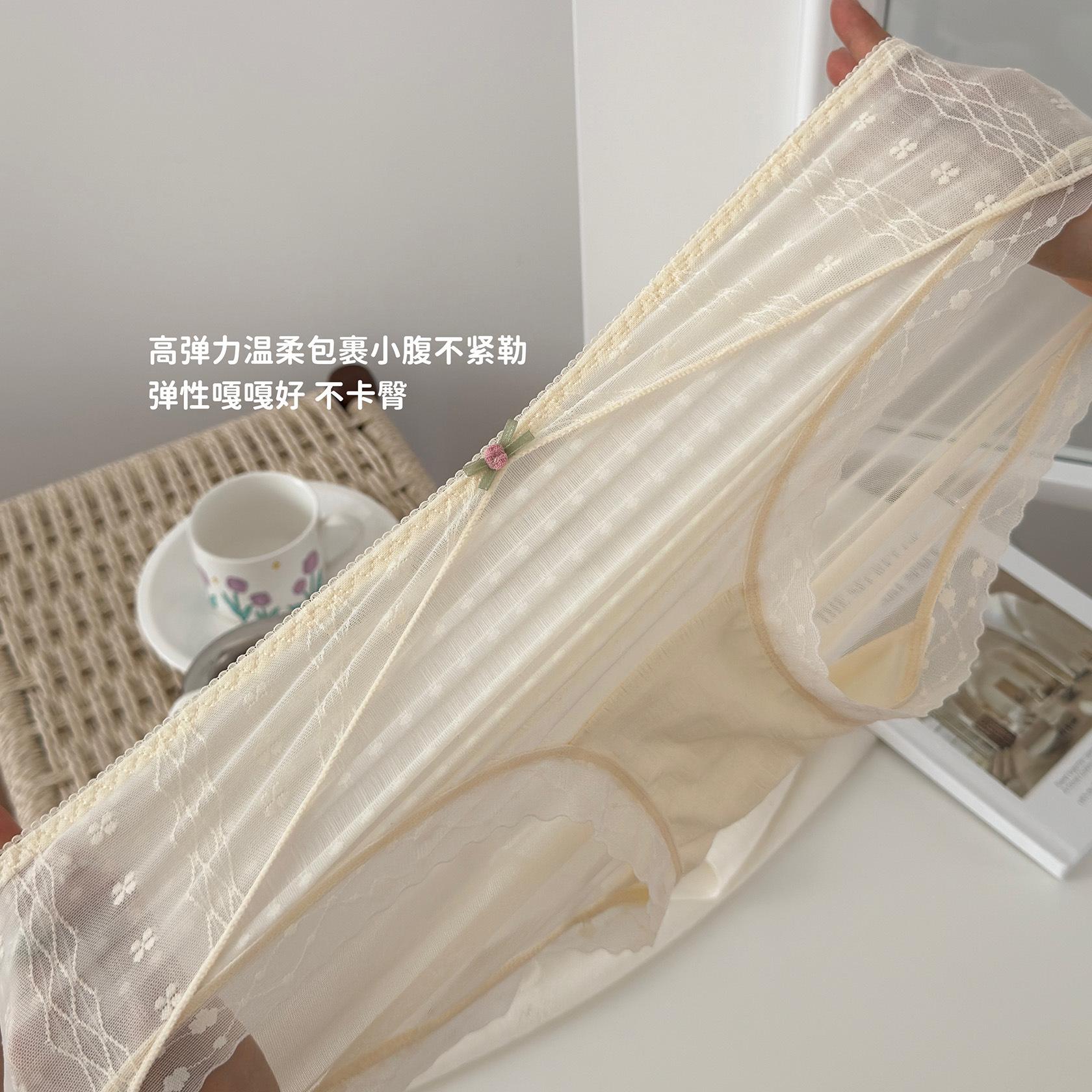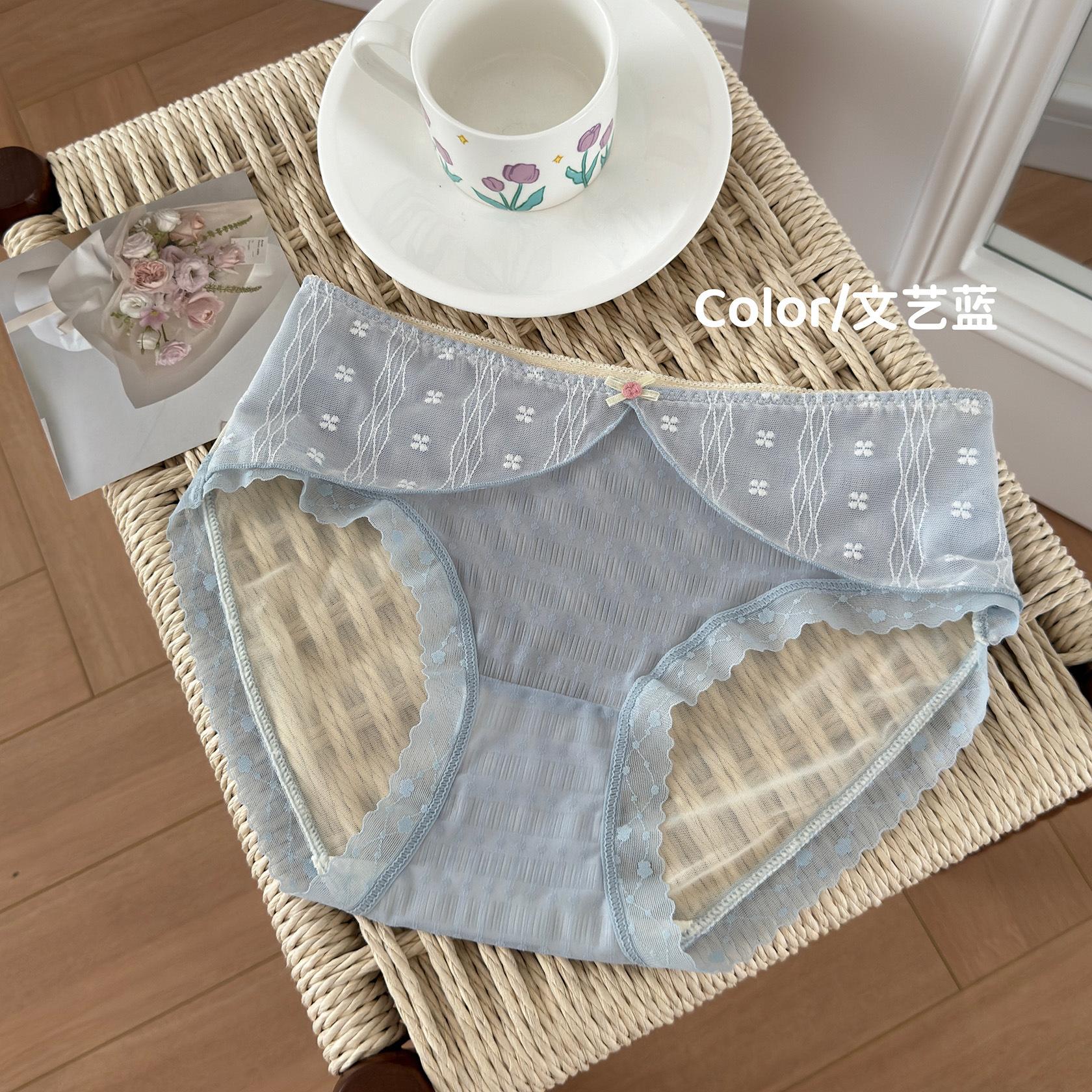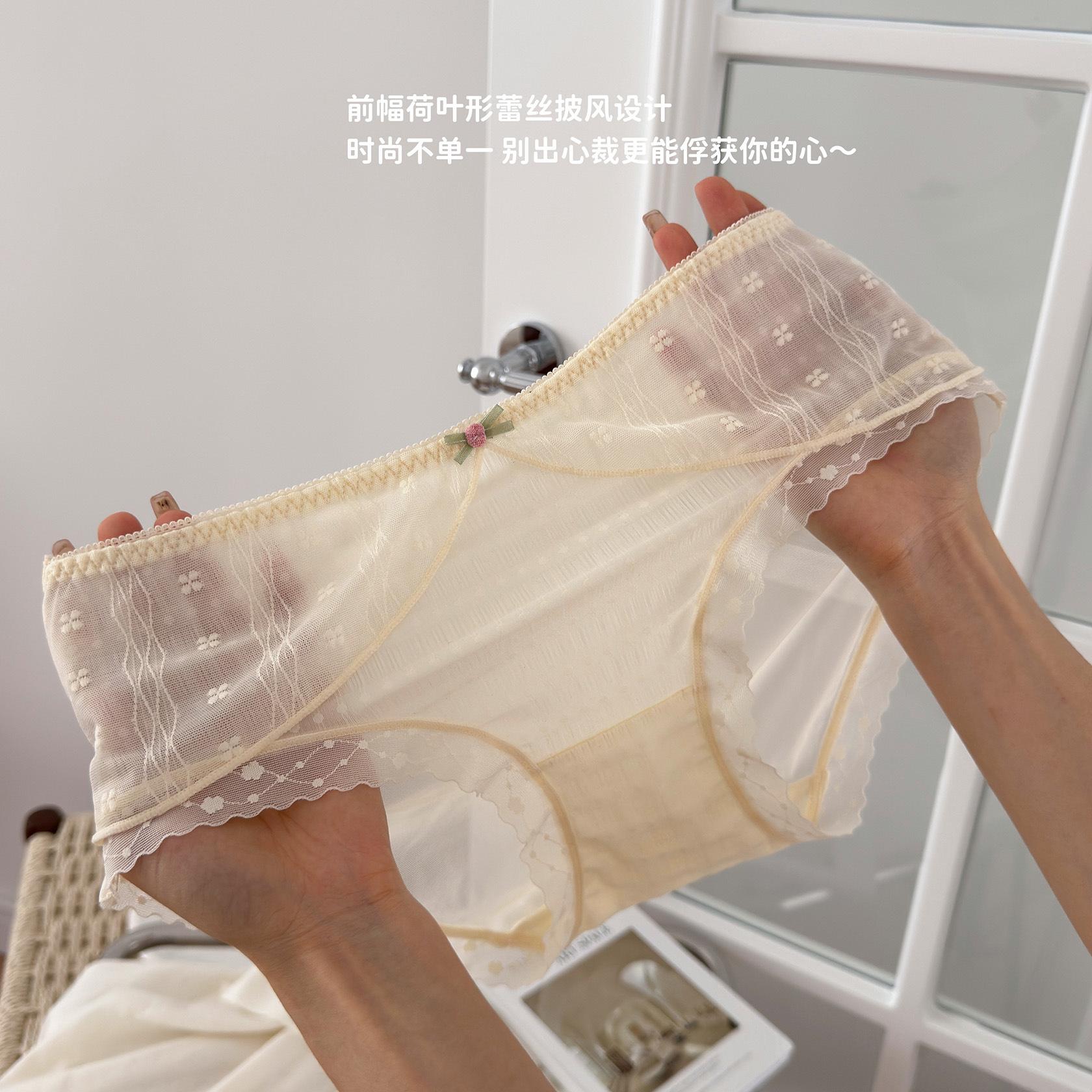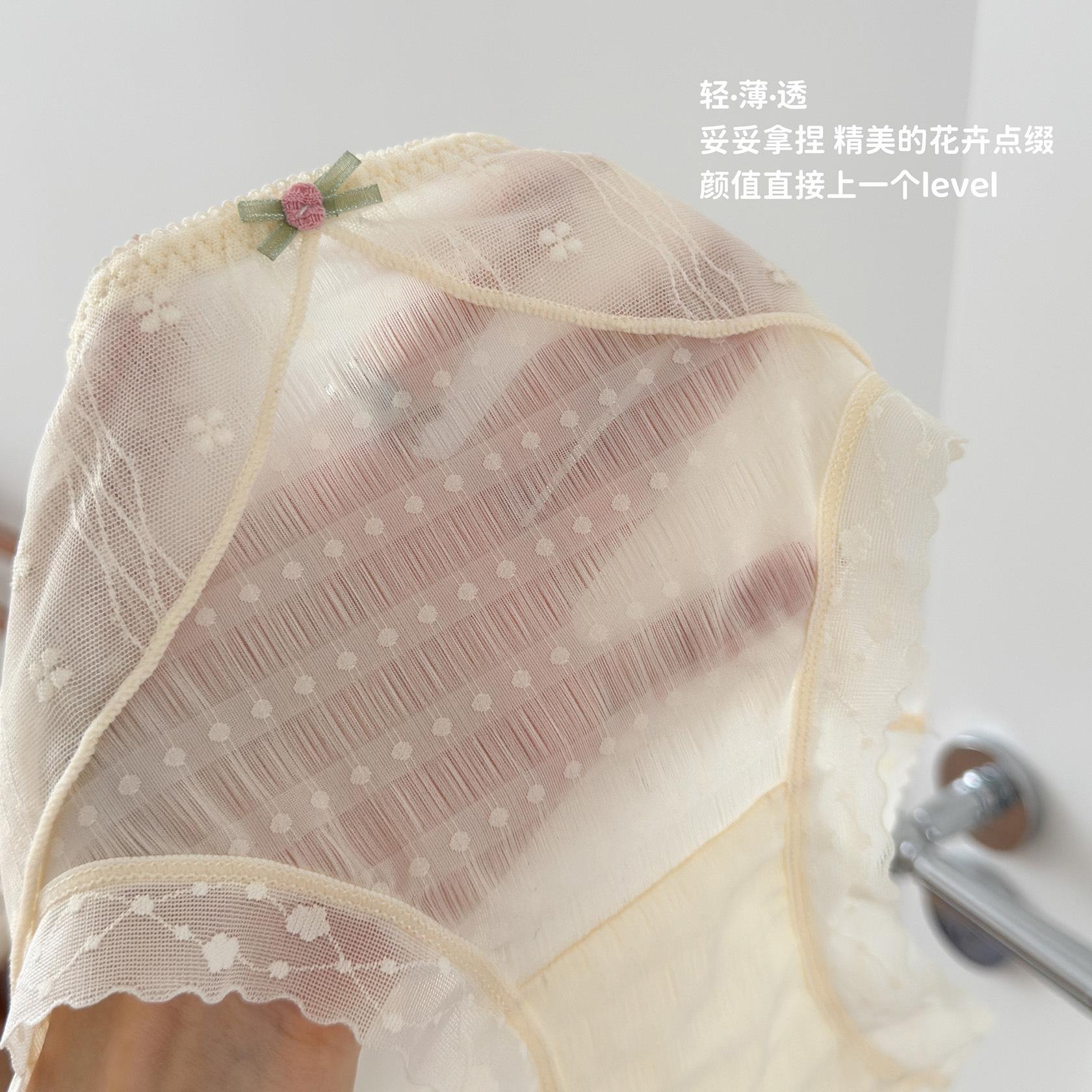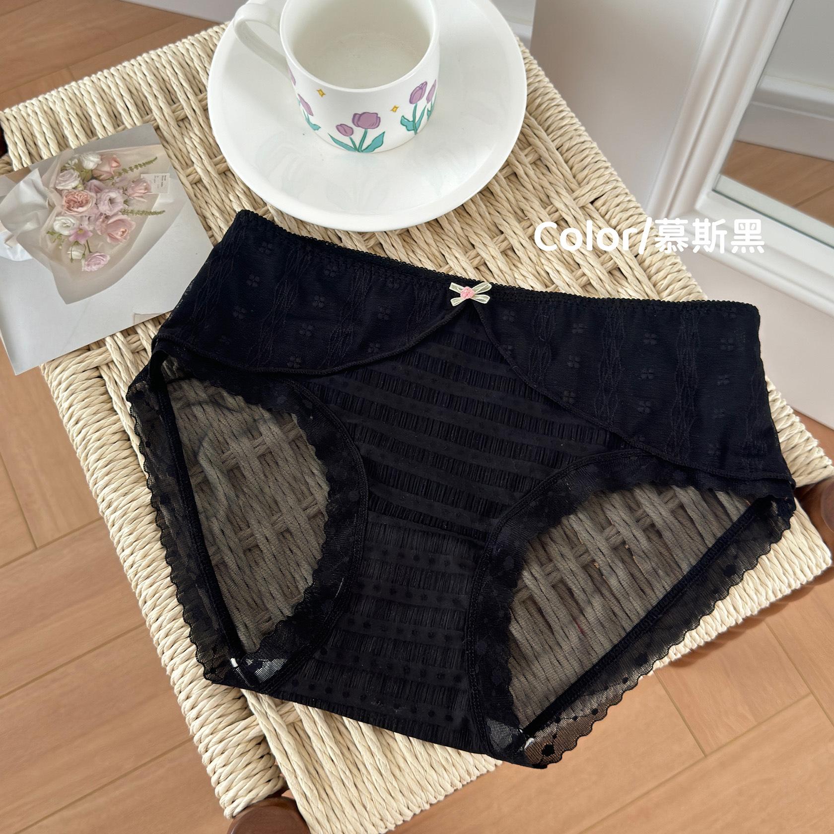 Ropa interior de encaje estilo francés Pure Desire para niña, con ondas de burbujas, malla de lunares, transpirable, sexy, dulce, antibacteriana, de cintura media.
