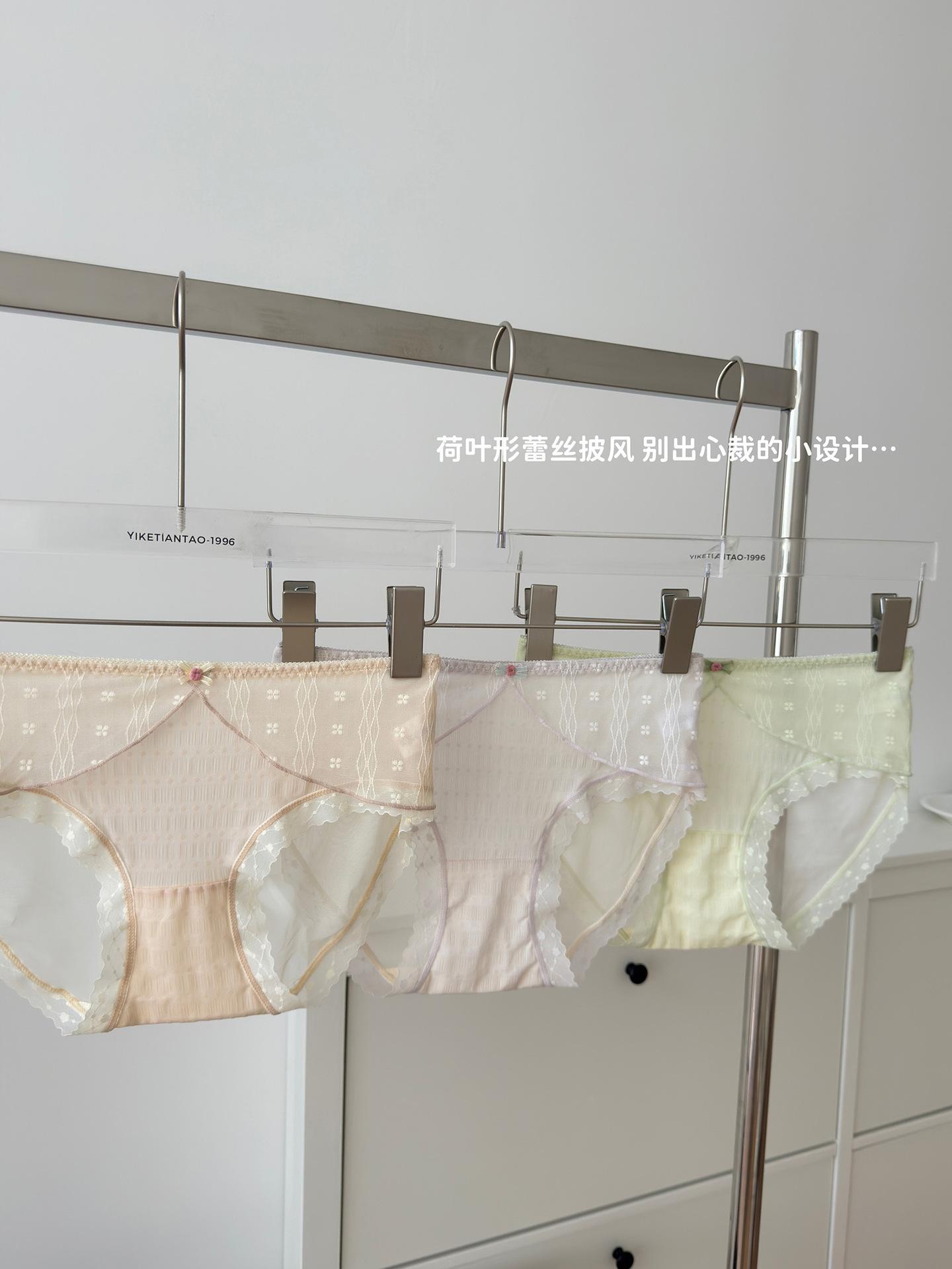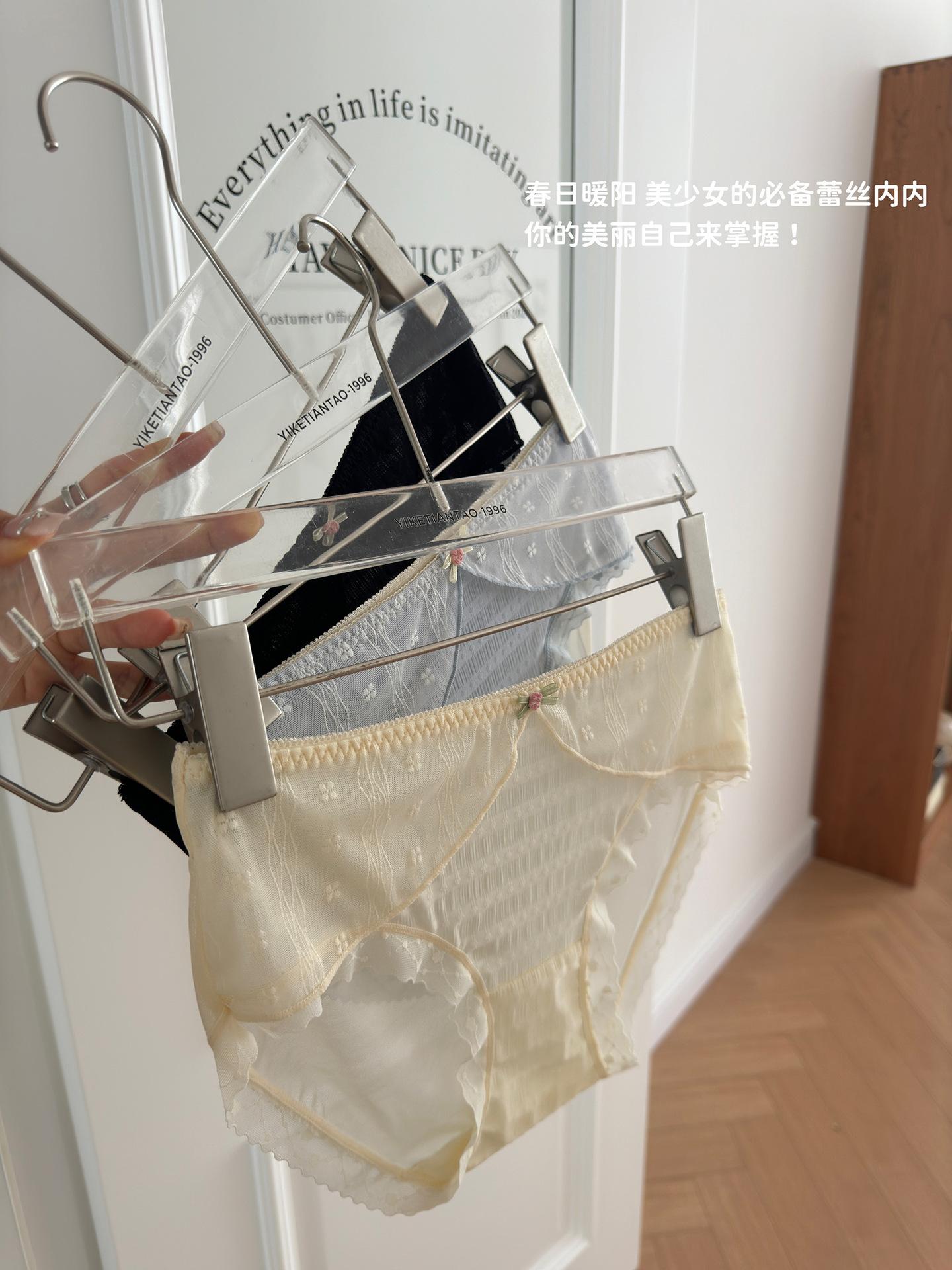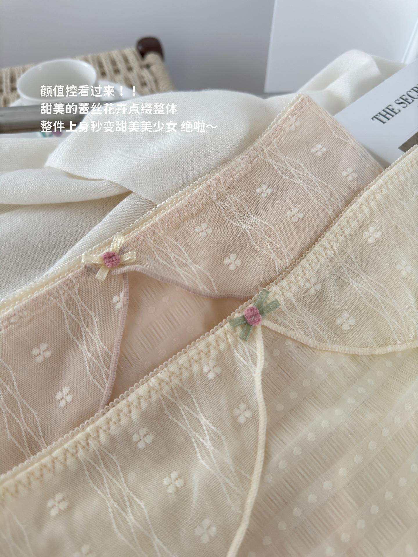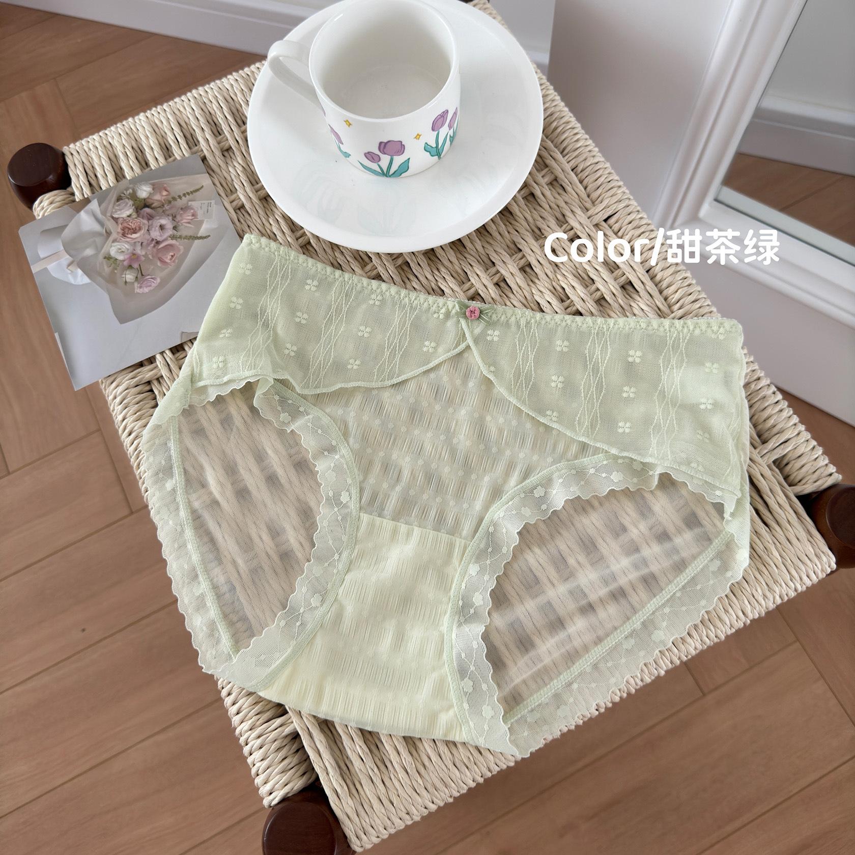 Ropa interior de encaje estilo francés Pure Desire para niña, con ondas de burbujas, malla de lunares, transpirable, sexy, dulce, antibacteriana, de cintura media.