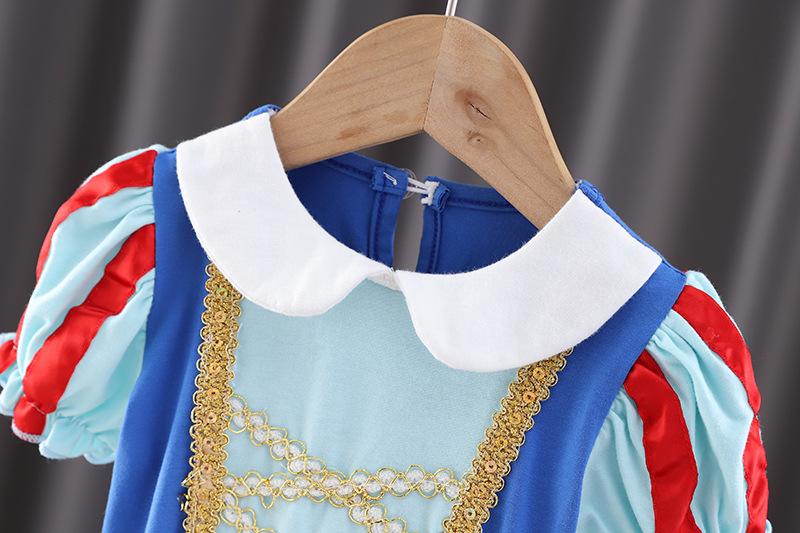 Vestido de princesa Elsa de Frozen de manga corta colorido, ropa infantil de comercio exterior, vestido de niña, disfraz de actuación para el Día del Niño
