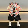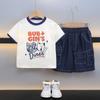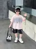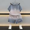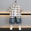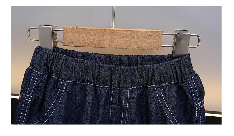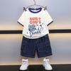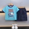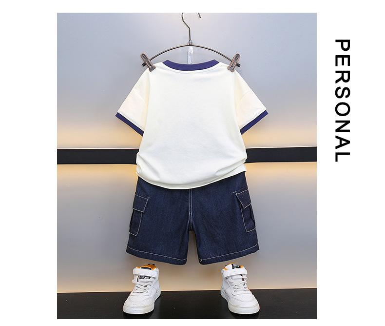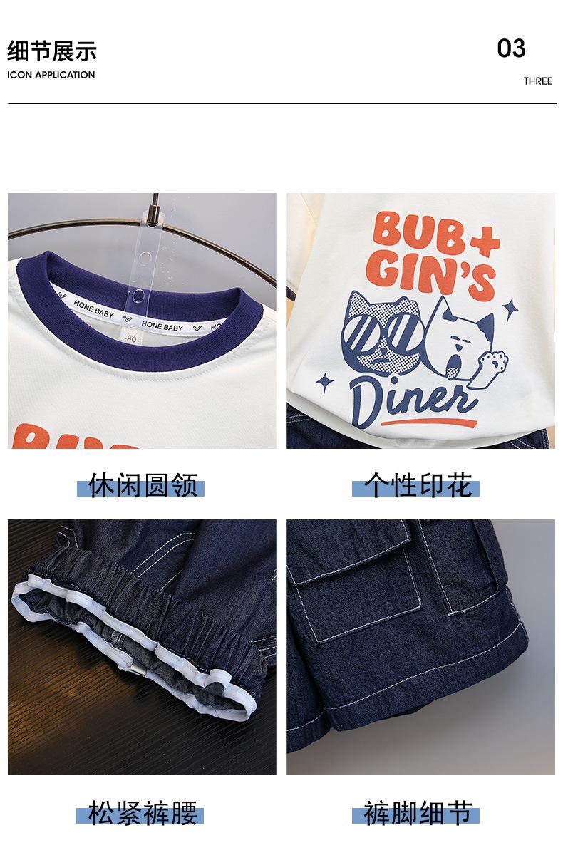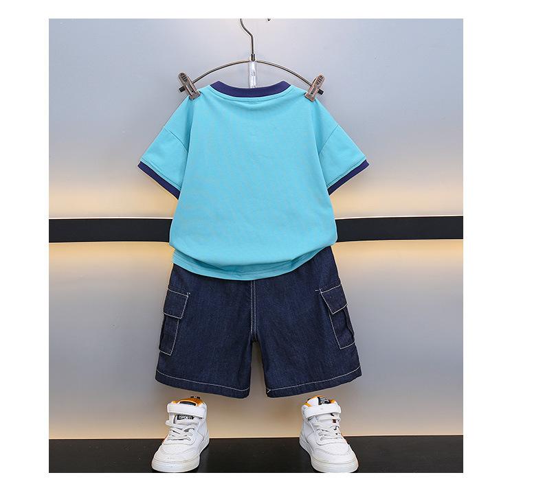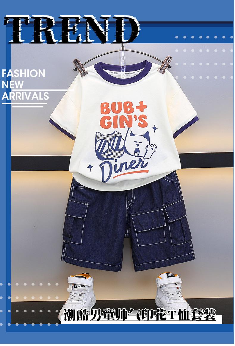 Traje para niño Ropa de verano 2025 Nuevo Conjunto de dos piezas de jeans de manga corta con estampado de dibujos animados delgado para niños pequeños Ropa para bebés y niños pequeños