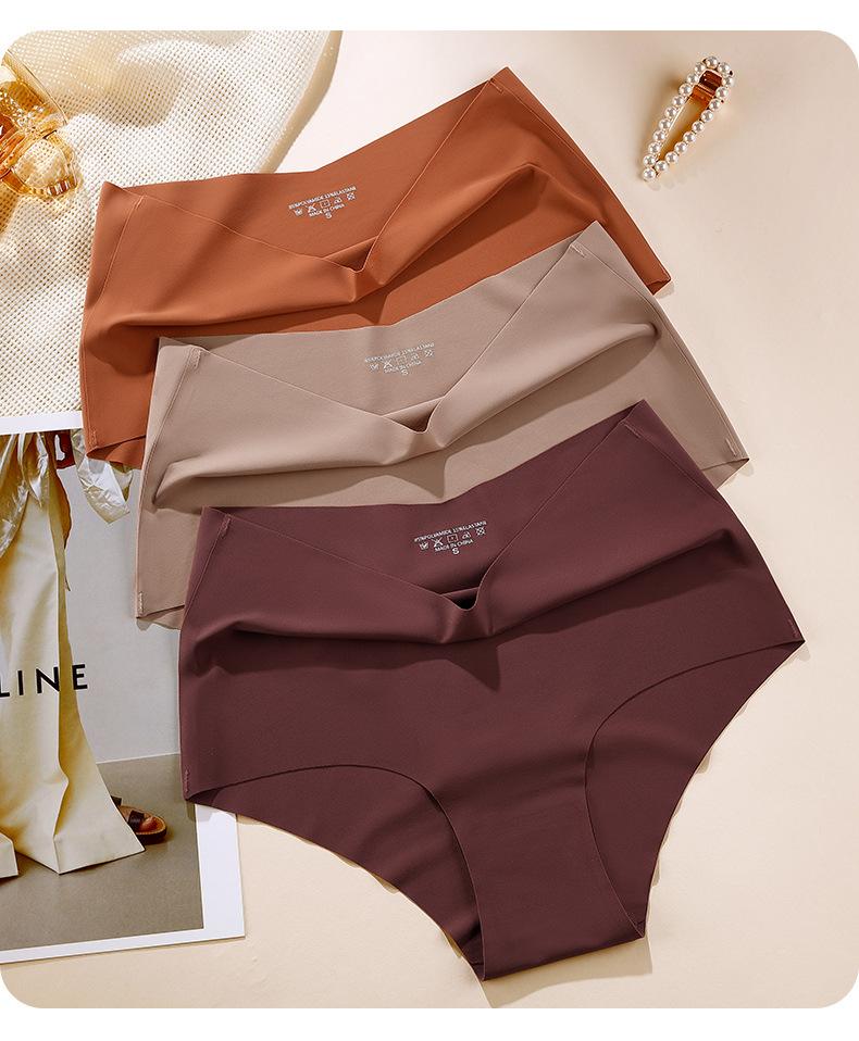 Ropa interior de seda helada sin costuras europea y americana para mujer, talla grande, cintura alta, cintura en forma de V, entrepierna de algodón, bragas transpirables de secado rápido para embarazadas