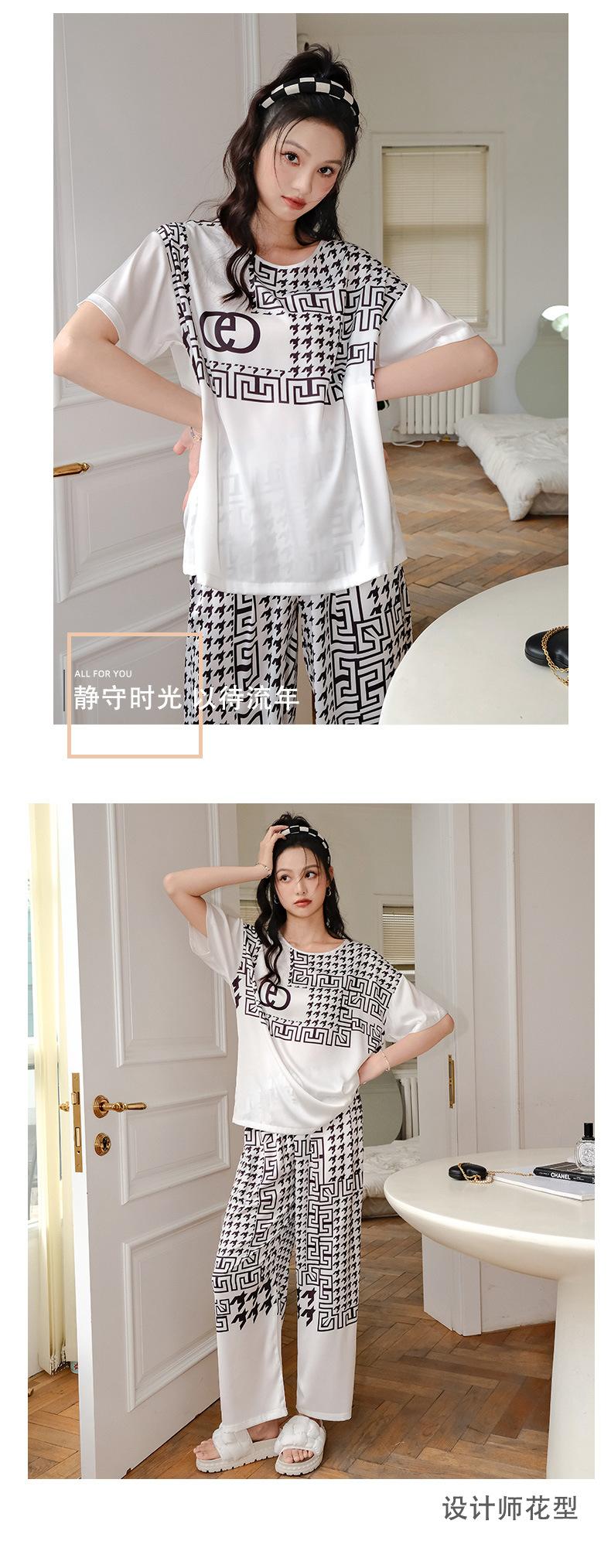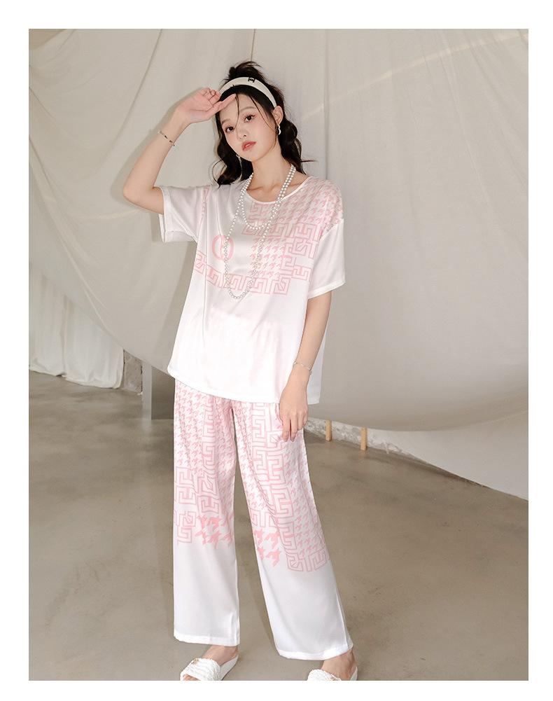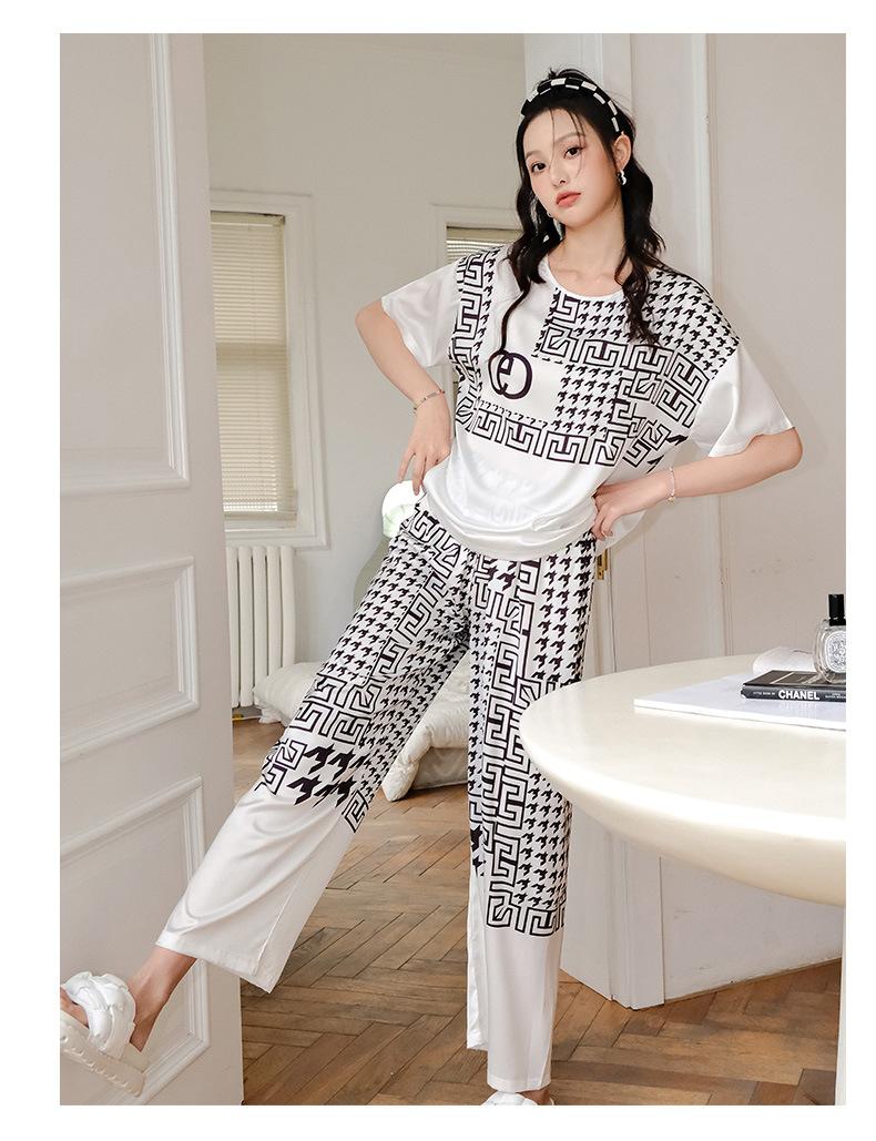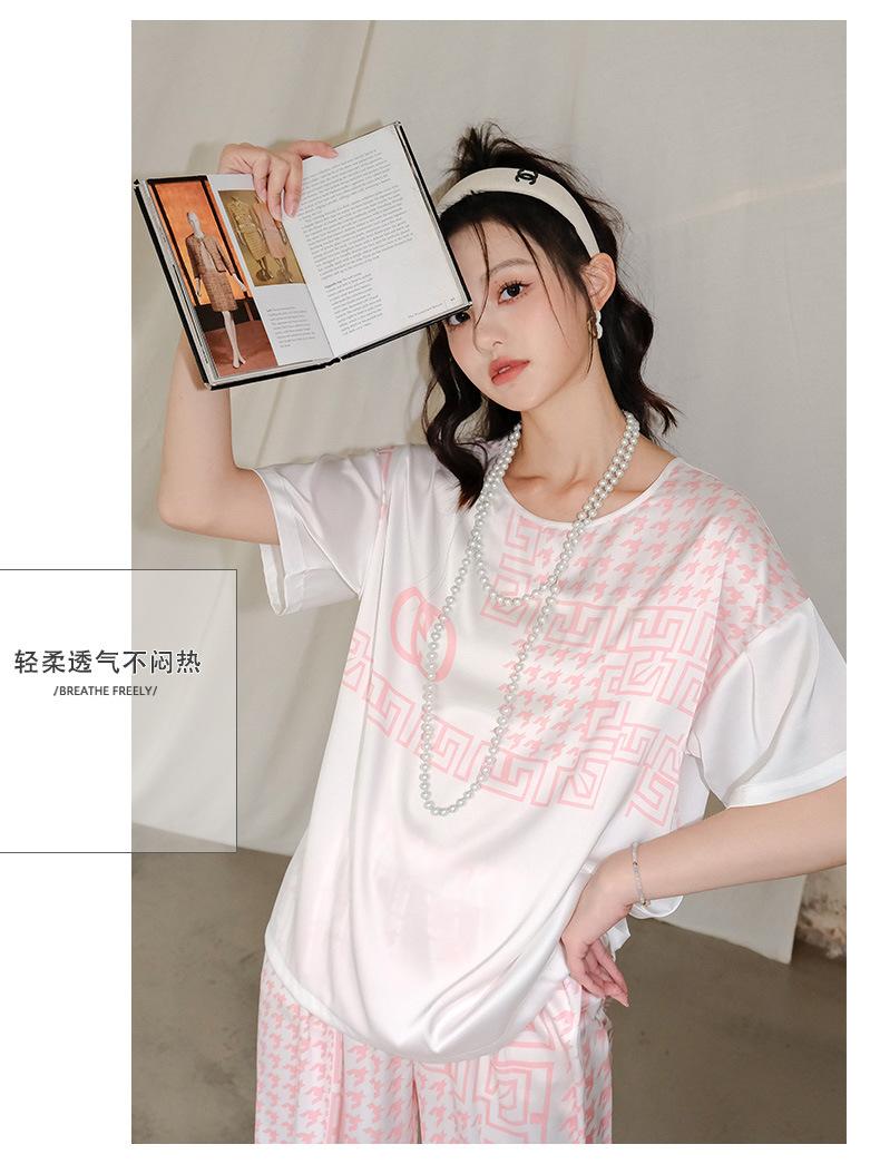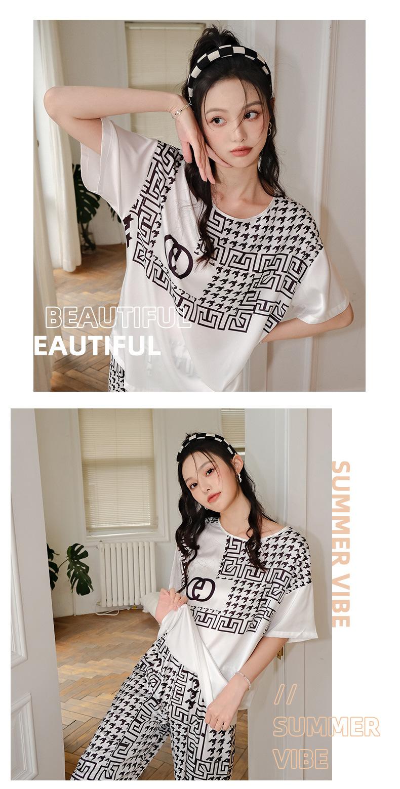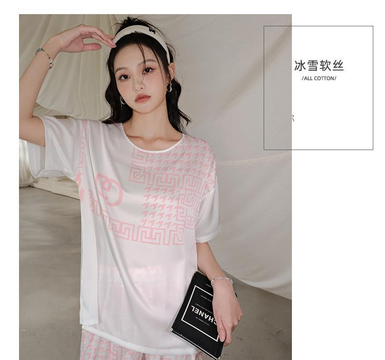 Compra Pijama Nuevo Fresco de Seda de Hielo 2025 para Mujer Verano Delgado Cuello Redondo Pulóver Manga Corta Pantalón Traje Ropa para el Hogar Venta al por Mayor al por mayor en Joom.pro