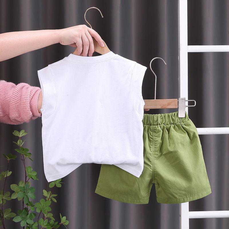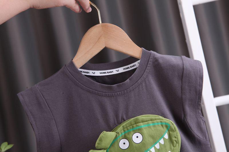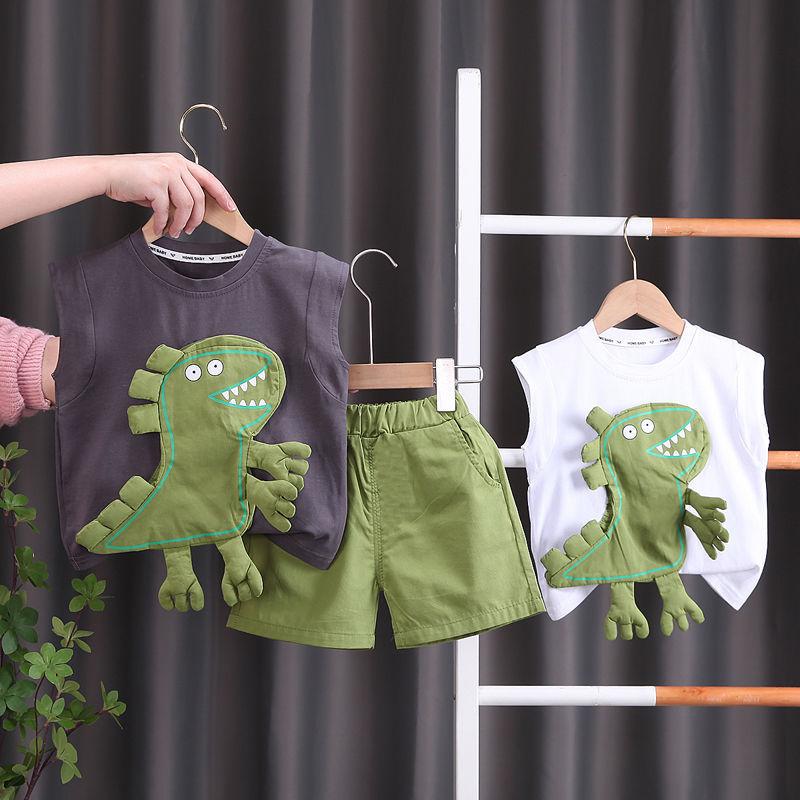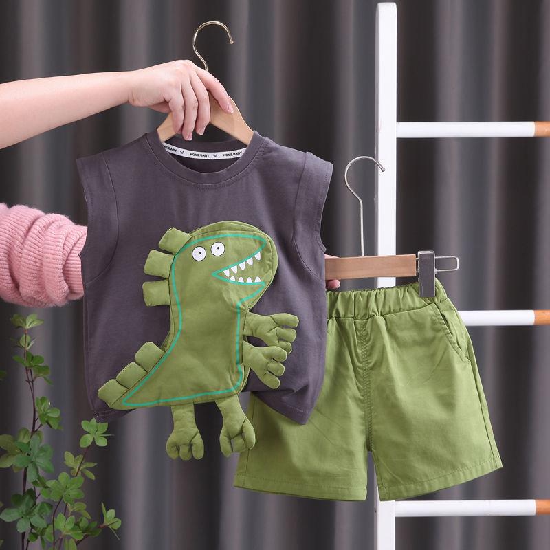 Traje de Verano para Niño Estilo Coreano 2025 Nuevo Estilo Bebé Dinosaurio Verano Niñas Ropa sin Mangas Conjunto de Dos Piezas