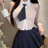 Amor Puro Chica Escolar Camisa de Chifón Uniforme con Abertura Lencería Sexy Tentación Gratis Deseo Puro Preppy Jk Traje de Falda Corta para Mujer