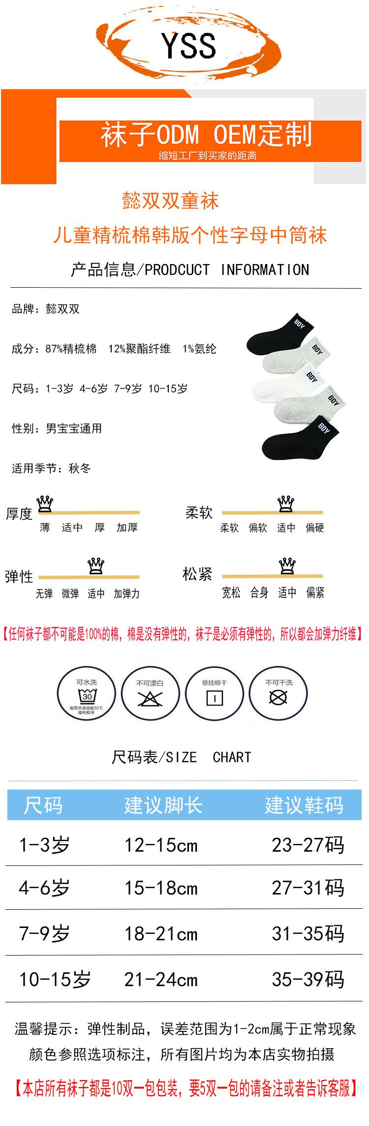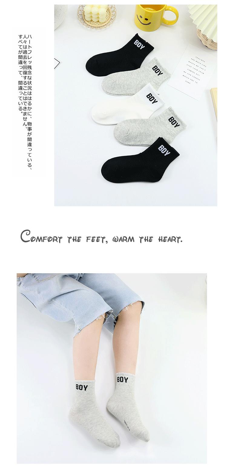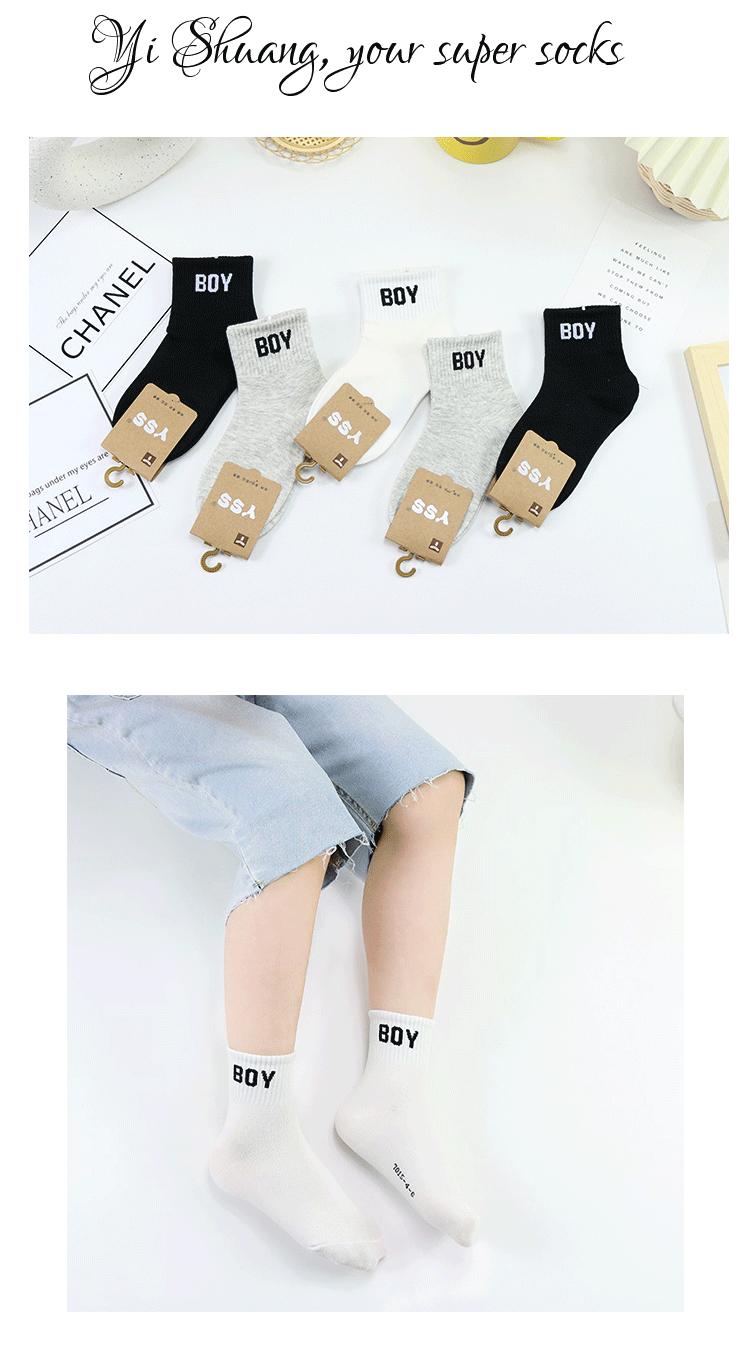 Calcetines para Niños Yi Par Otoño e Invierno Nuevos Calcetines de Media Caña con Letras Estilo Coreano Algodón Peinado Blanco y Negro Gris Calcetines Deportivos para Niños y Niñas