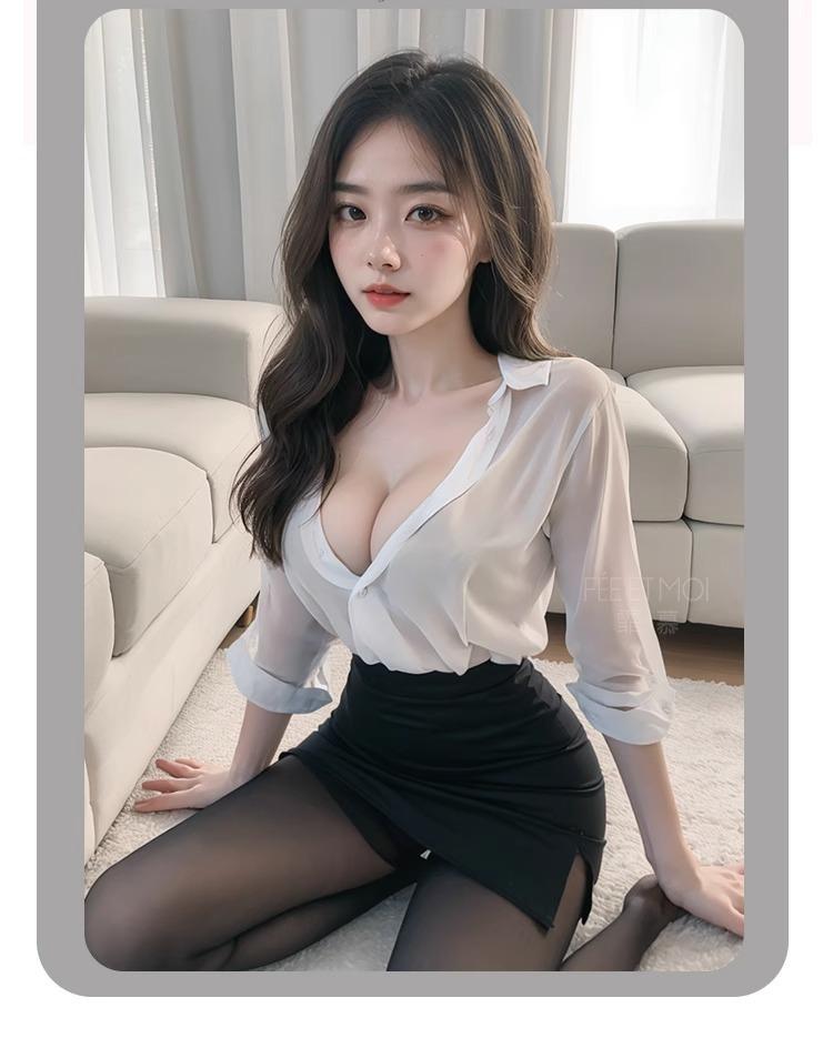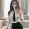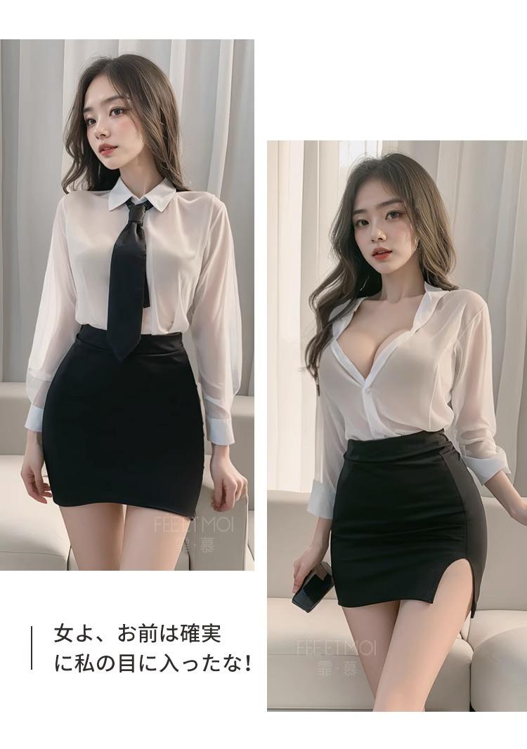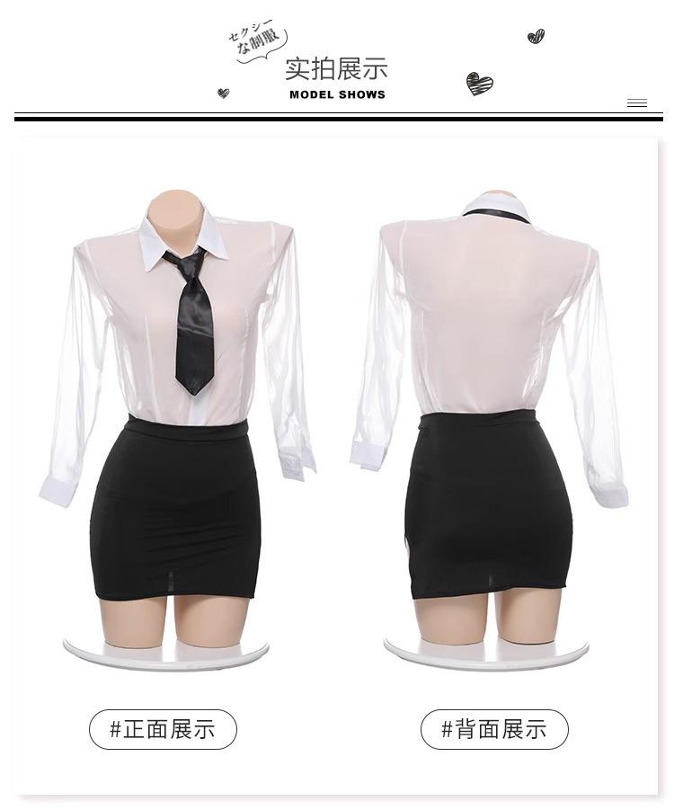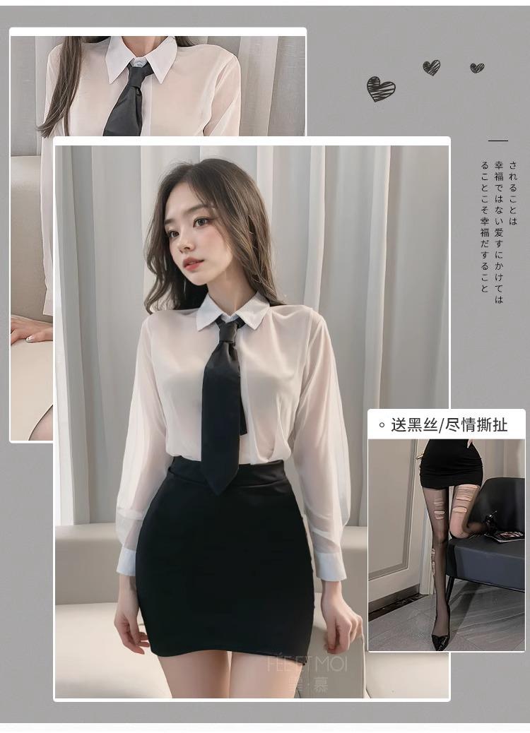 Sexy secretary [white shirt + black skirt + tie], Sexy secretary + black fishnet stockings, Sexy secretary + b...