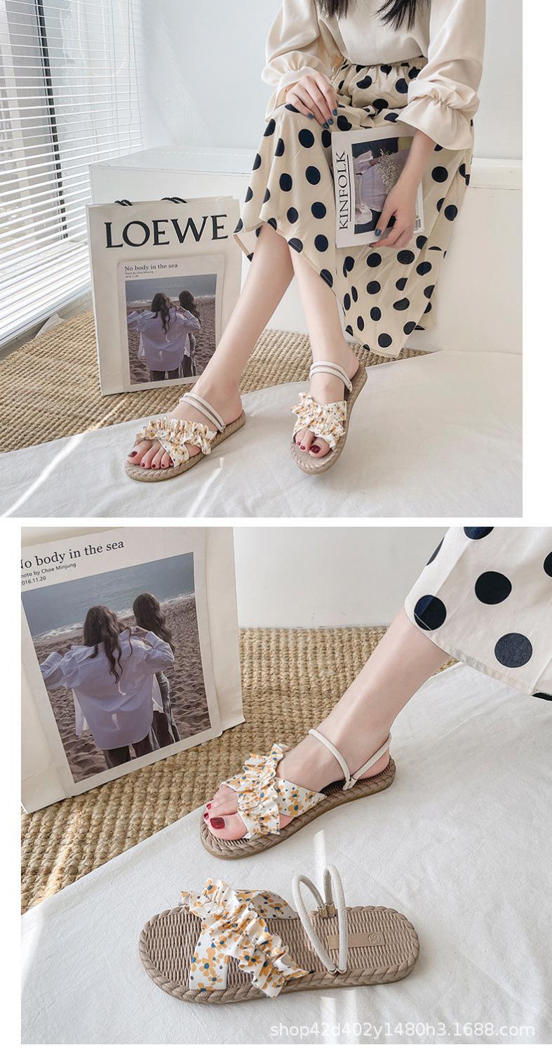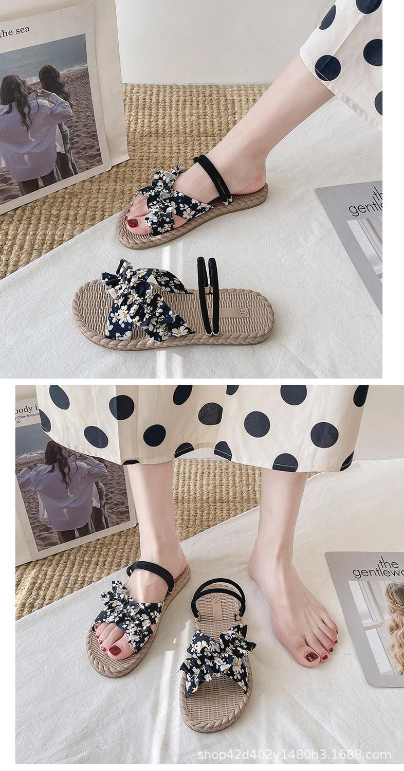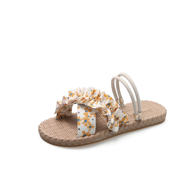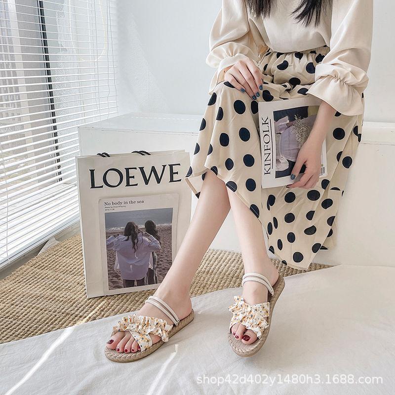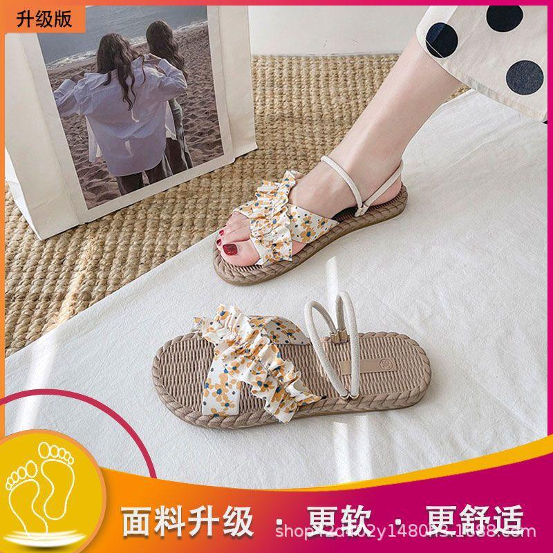 Pantuflas planas para mujer, ropa de verano 2024, nuevas, para playa, con estampado floral, a la moda, combinables con todo y falda.