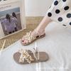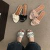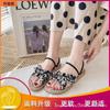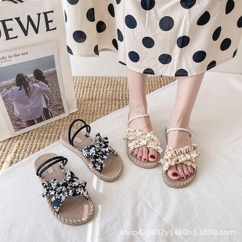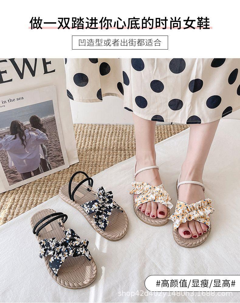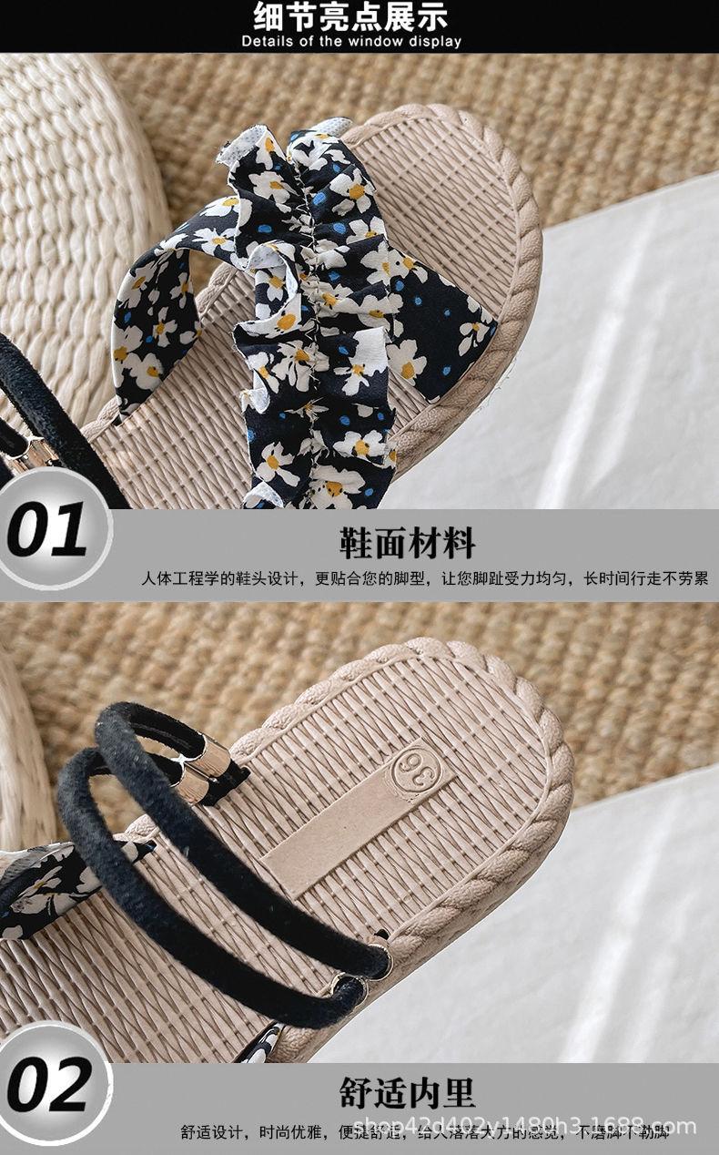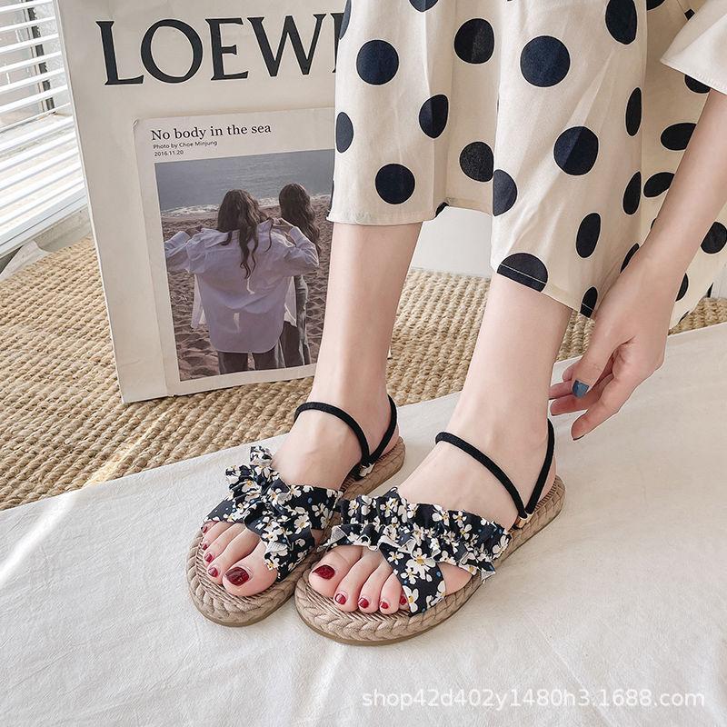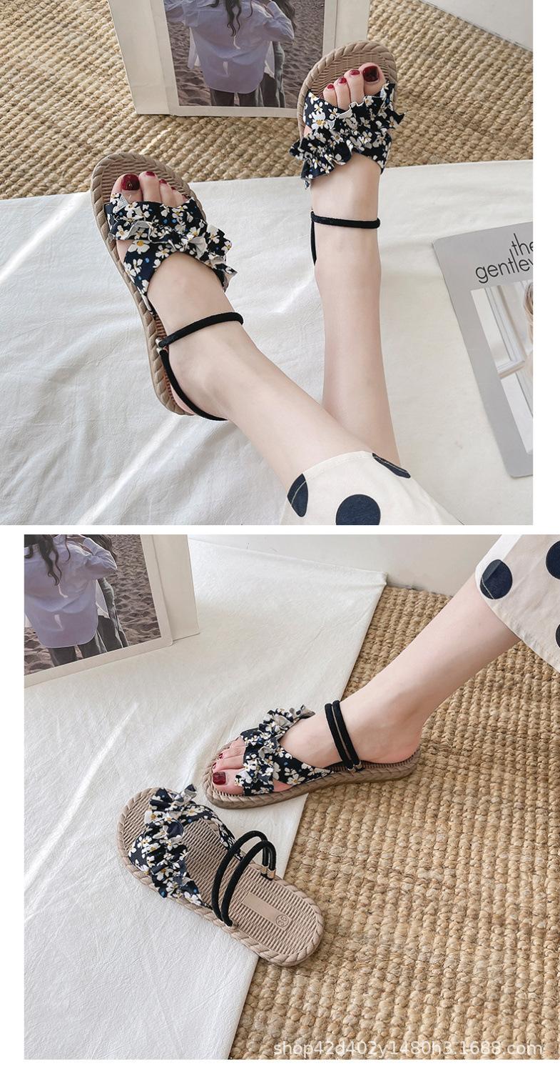 Pantuflas planas para mujer, ropa de verano 2024, nuevas, para playa, con estampado floral, a la moda, combinables con todo y falda.