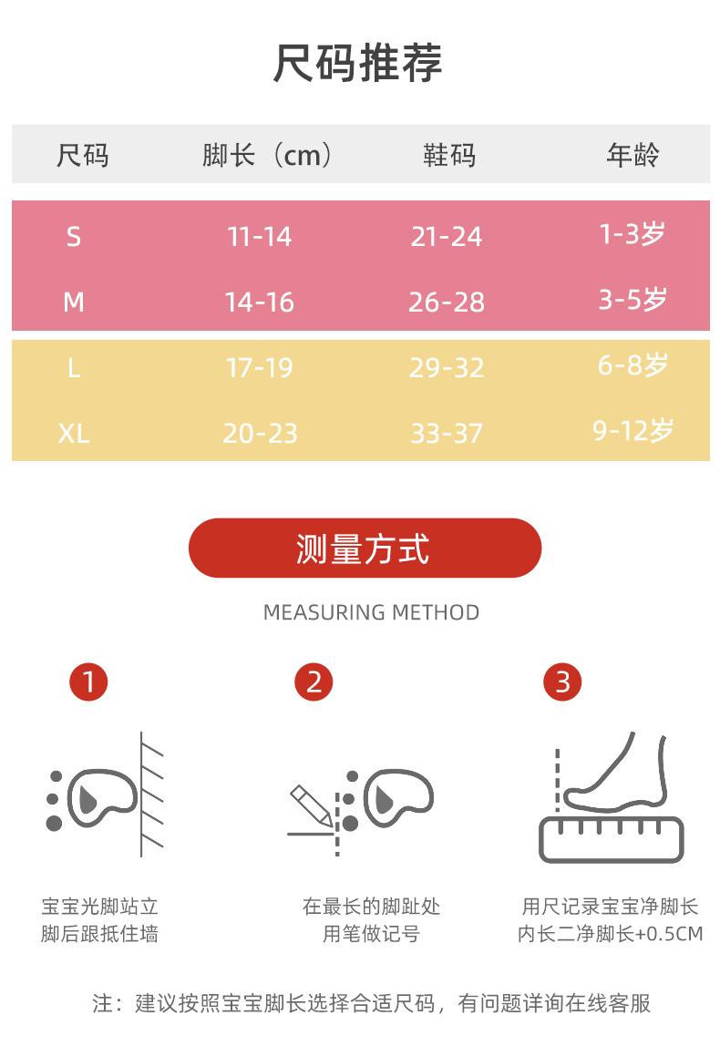 Size S (1-3 years), Size M (3-5 years old), L size (6-8 years old), XL (9-12 years old)