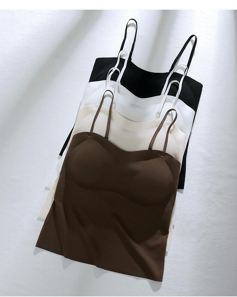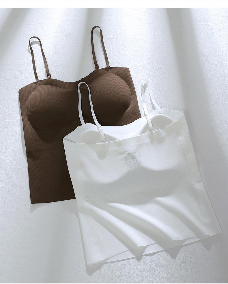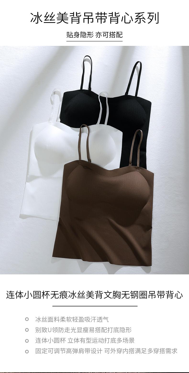 Chaleco de verano sin costuras de seda de hielo con tirantes en la espalda y almohadilla para el pecho, top de tubo de una pieza, ropa interior cómoda para mujer, base fina
