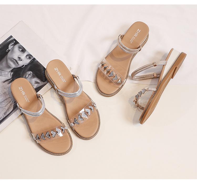 Sandalias ZHR para mujer, novedad de 2023, sandalias de hadas para estudiantes que combinan con todo, sandalias de diamantes de imitación, sandalias de dos usos para mujer, zapatos de mujer