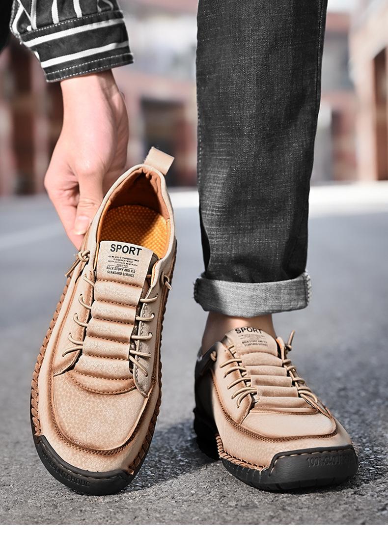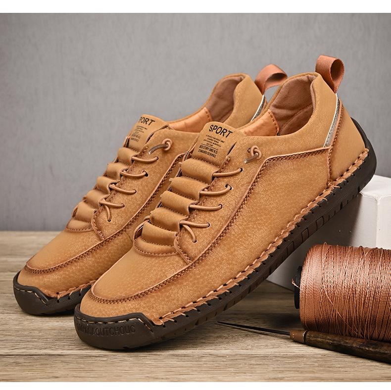 Zapatos de Cuero para Hombre de Talla Grande Transfronterizos, Zapatos Casuales para Hombre Cosidos a Mano de Corte Bajo, Slip-Ons, Zapatos de Conducción Slip-On para Hombre