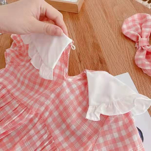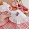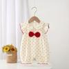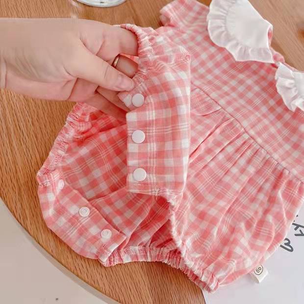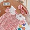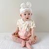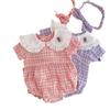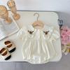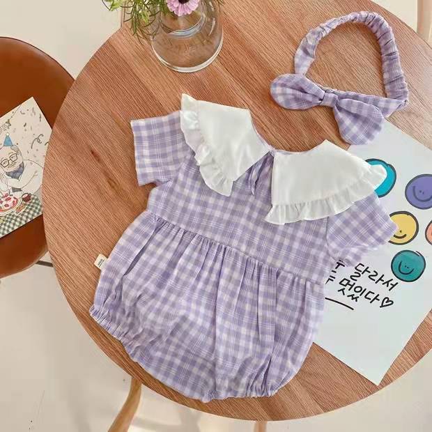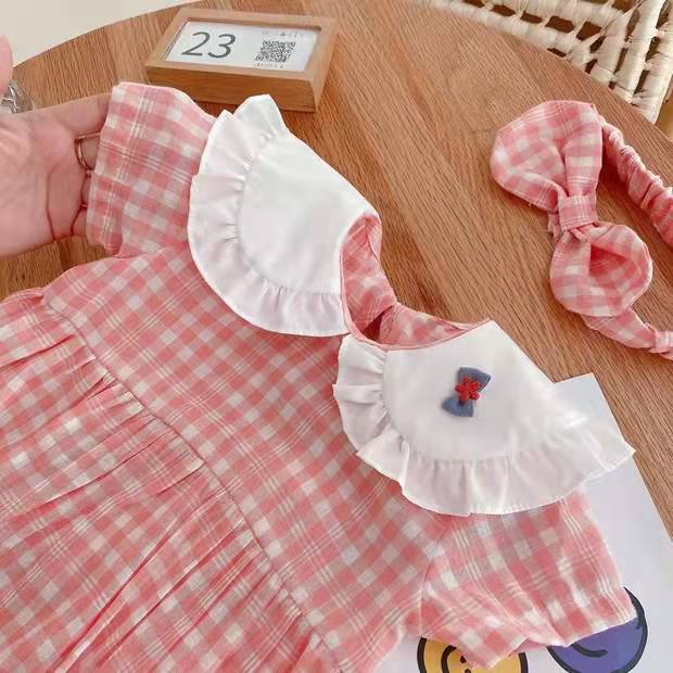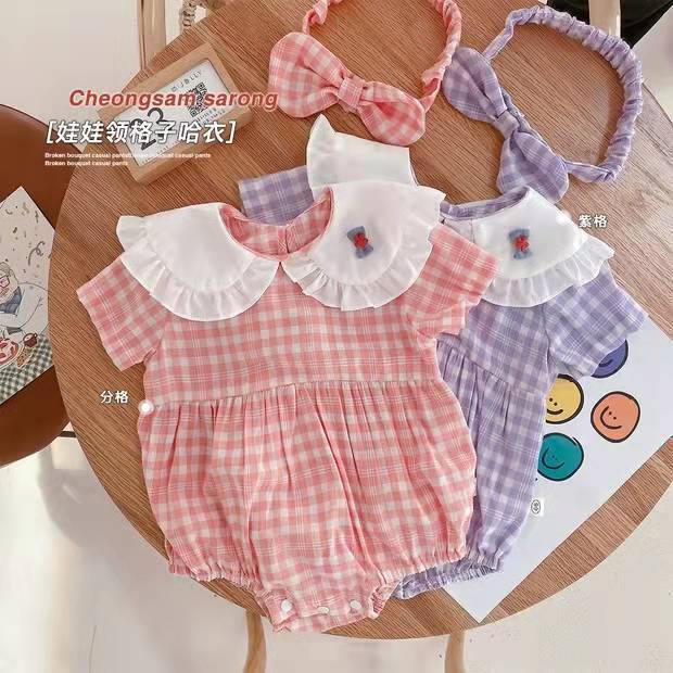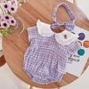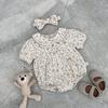 Mono de verano de estilo coreano para bebé, bonito mono de muñeca con flores y cuello de media manga, bolso de bebé, mameluco con pedos y banda para el pelo