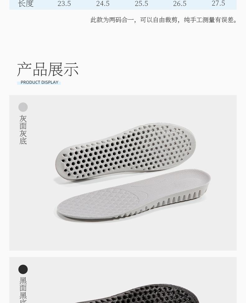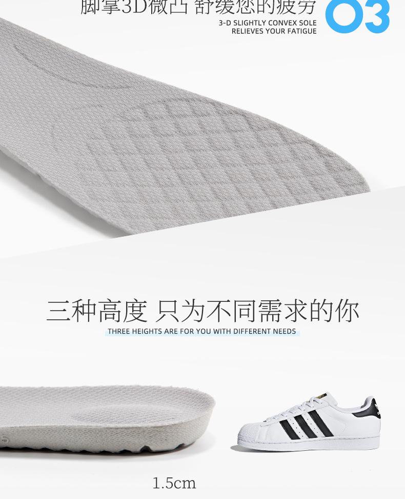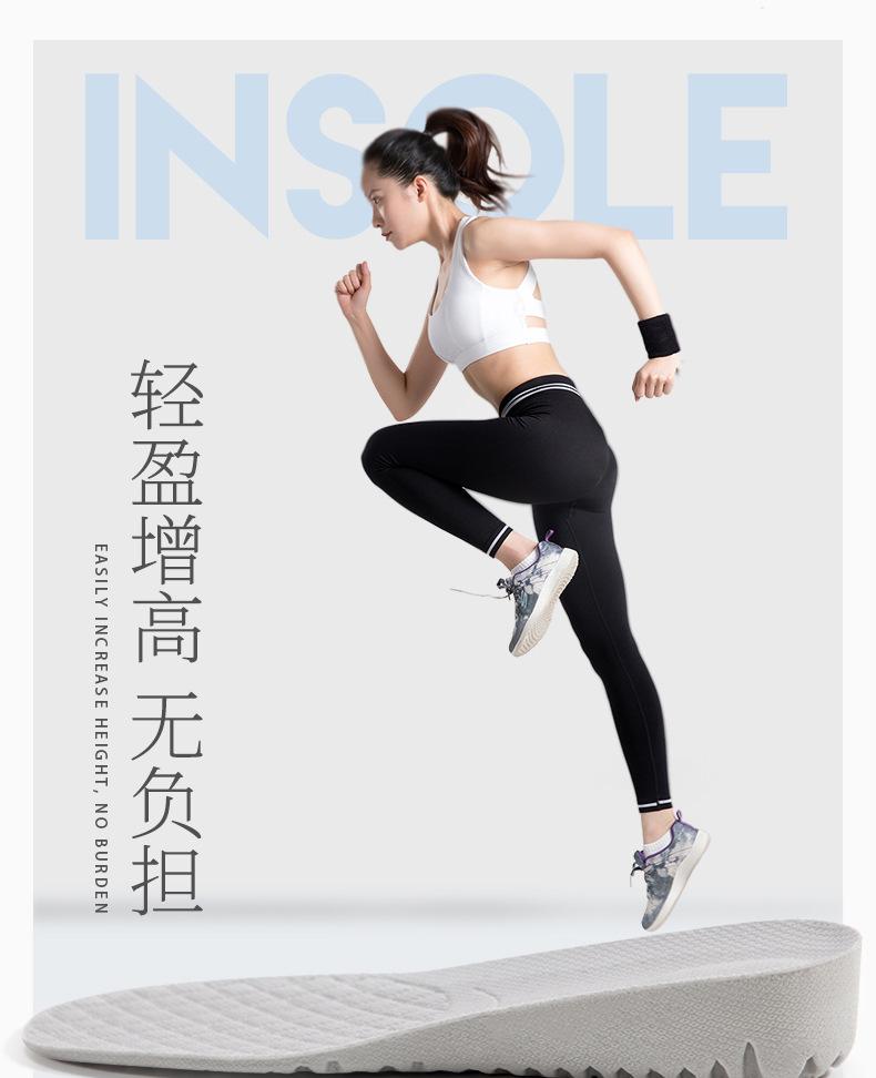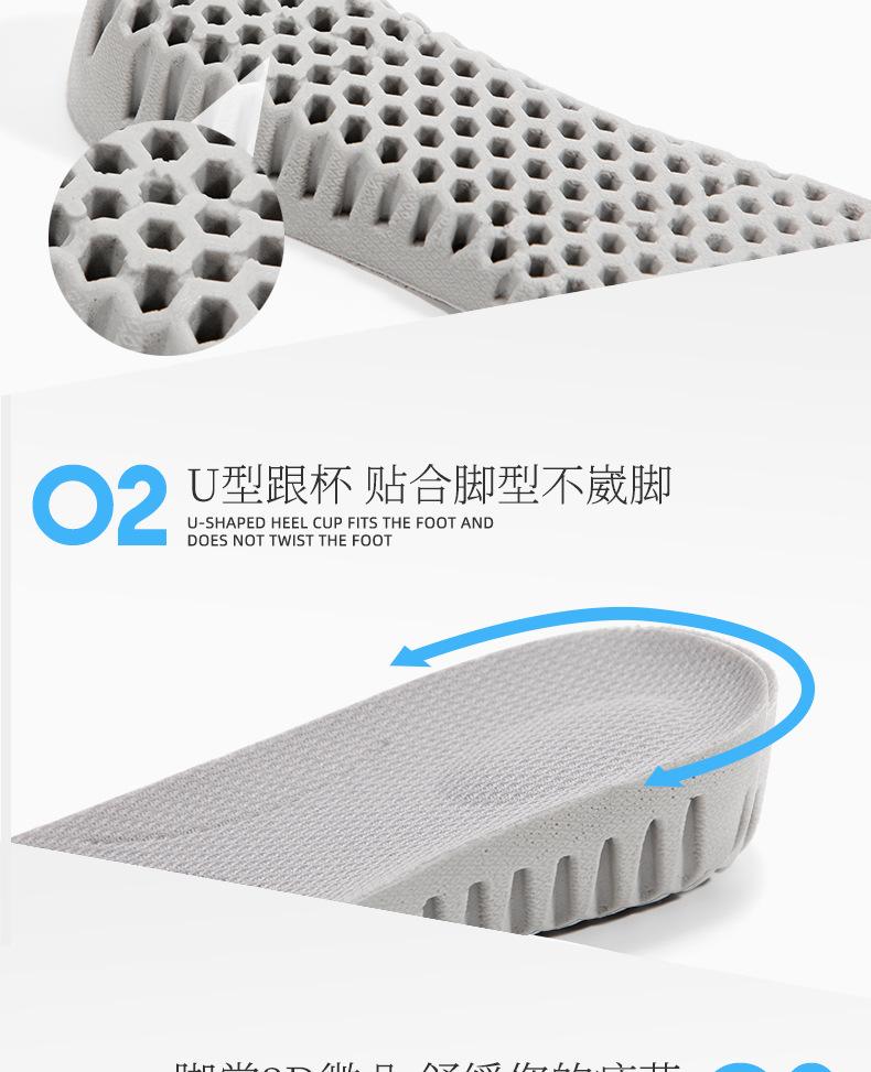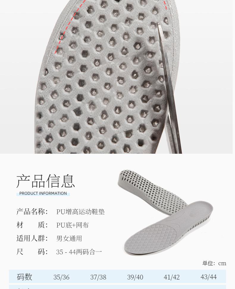 Plantilla deportiva nueva gris de PU de alta elasticidad, engrosada, con absorción de impactos, plantilla invisible que absorbe el sudor y aumenta la altura de 2,5 cm.