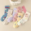 Calcetines de terciopelo coral para mujer, otoño e invierno, con forro polar, gruesos y cálidos, hasta la mitad de la pantorrilla, lindos y dulces, calcetines antideslizantes para el suelo, venta al por mayor