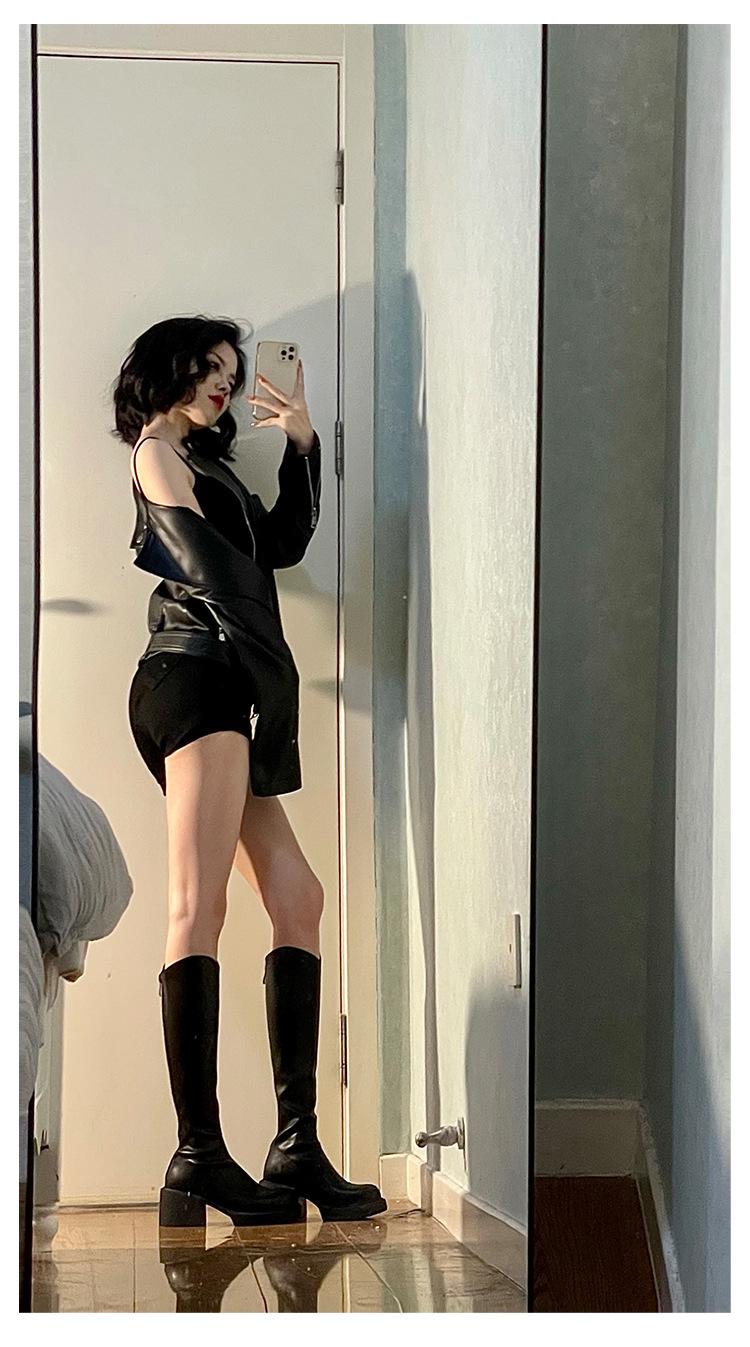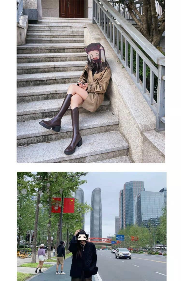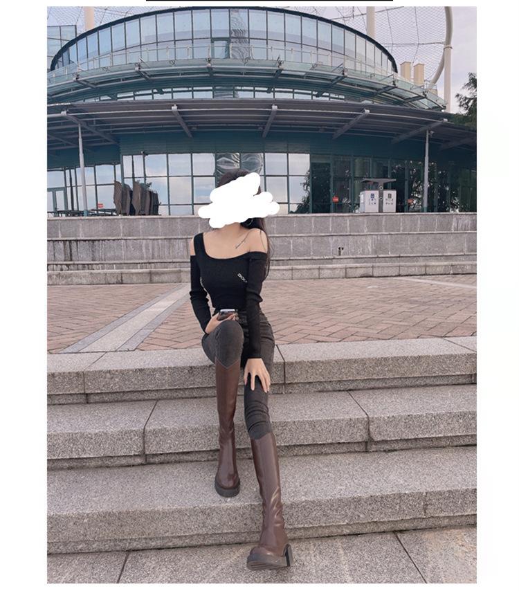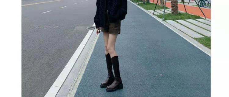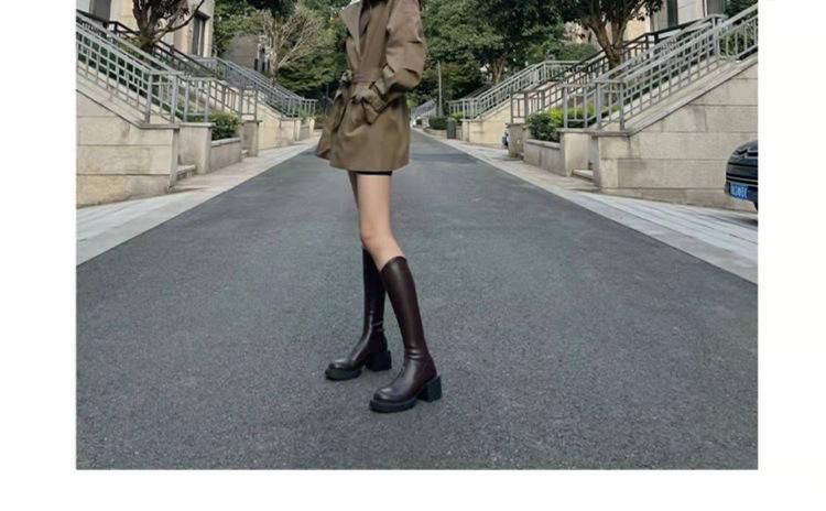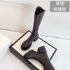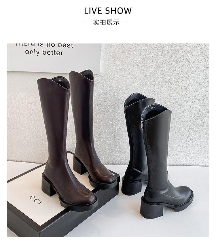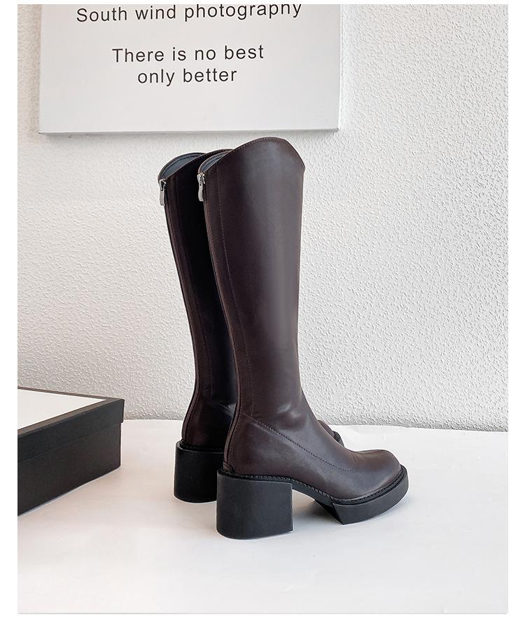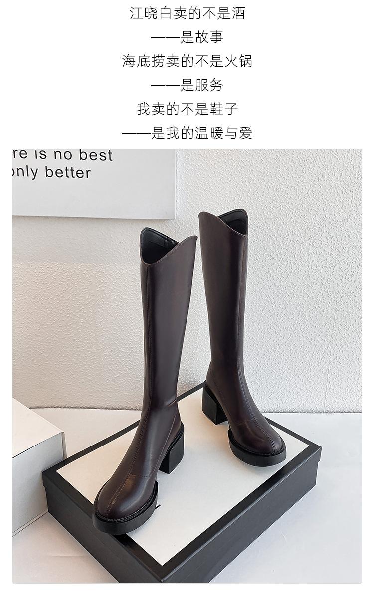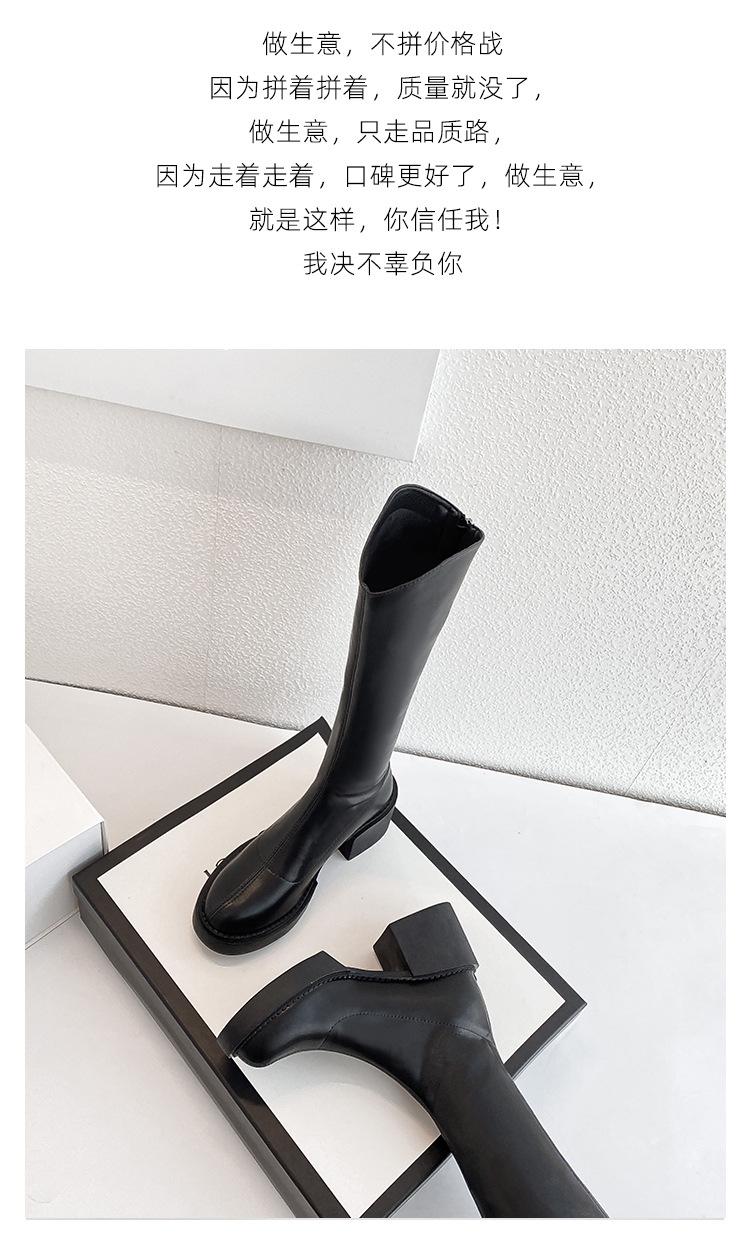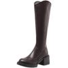 Botas altas de mujer, tacones no por encima de la rodilla, suela gruesa, botas de caballero con cuello en V, tacones gruesos, botas delgadas elásticas de tubo alto, botas pequeñas