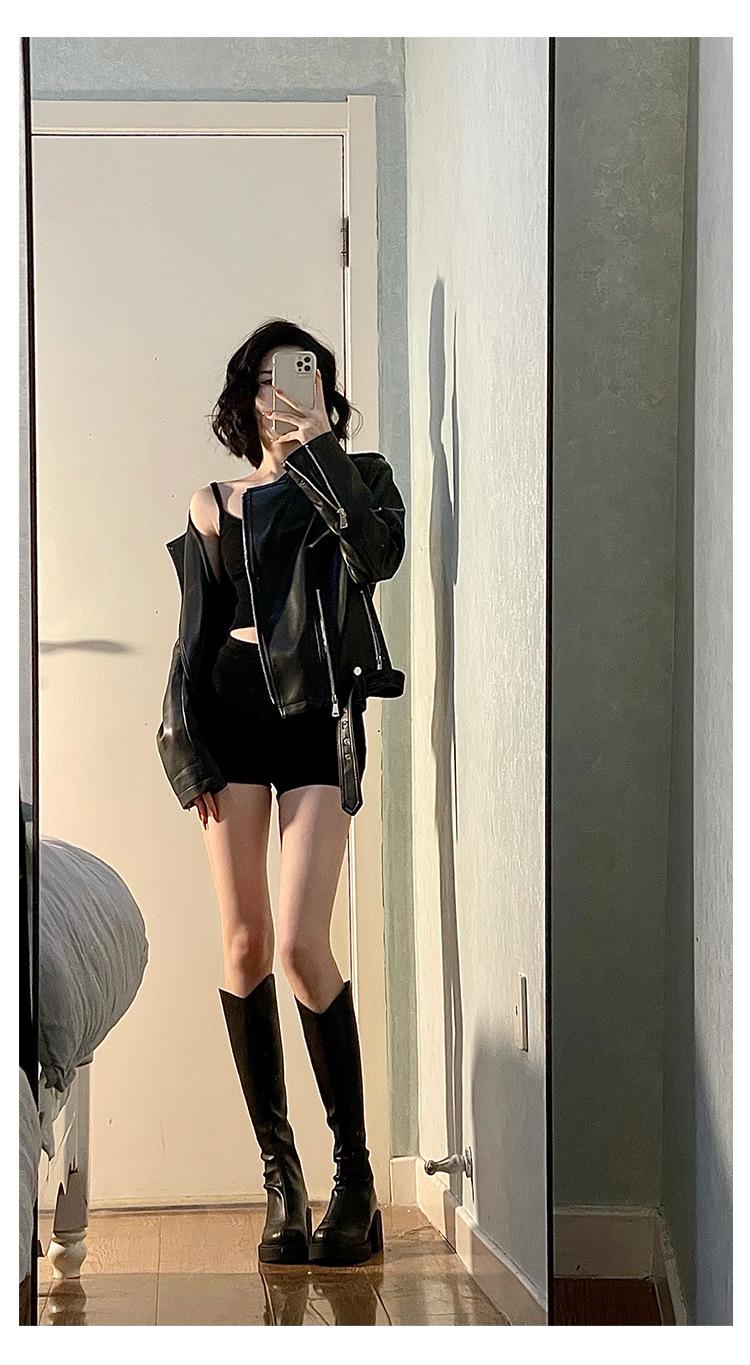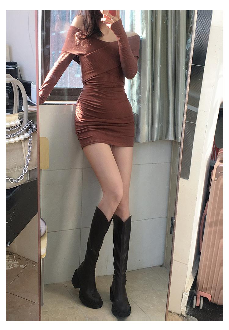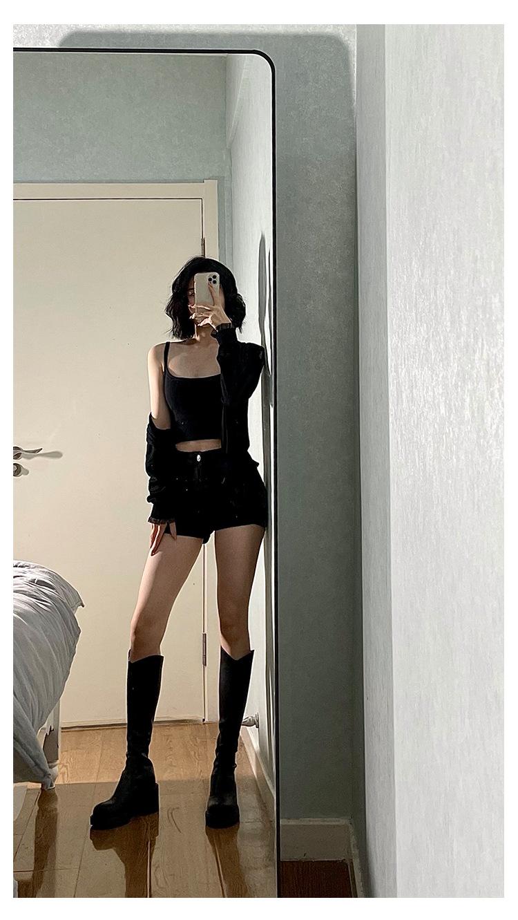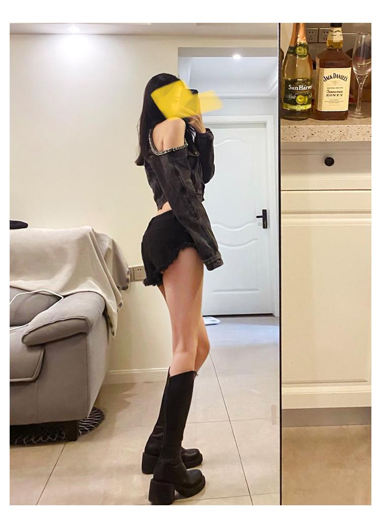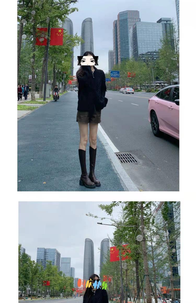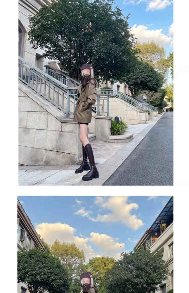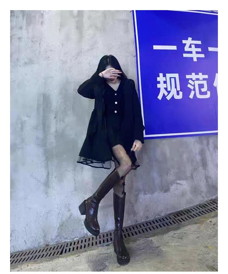 Botas altas de mujer, tacones no por encima de la rodilla, suela gruesa, botas de caballero con cuello en V, tacones gruesos, botas delgadas elásticas de tubo alto, botas pequeñas