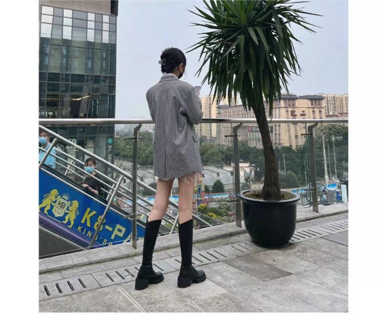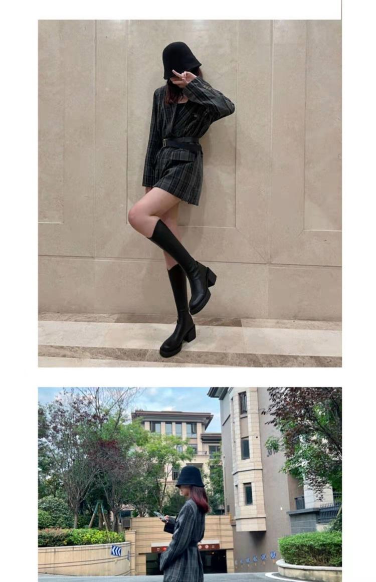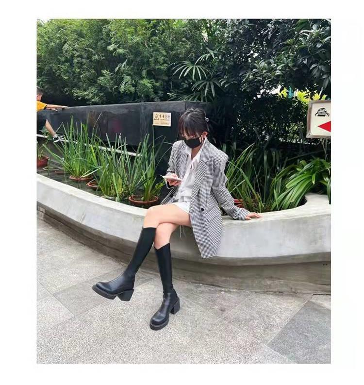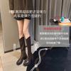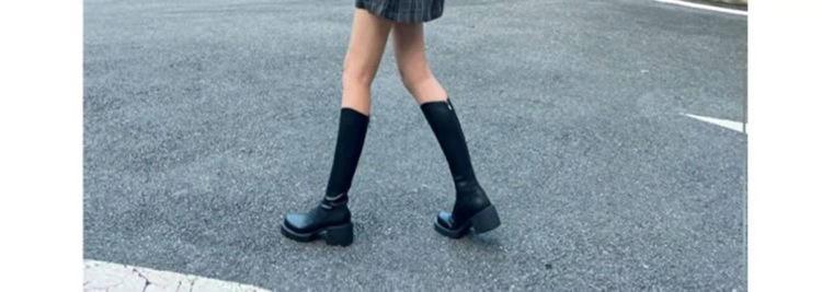 Botas largas de mujer, pero con tacón hasta la rodilla, suela gruesa, botas de caballero con tacón grueso, botas altas de tubo elásticas, botas pequeñas