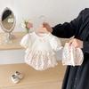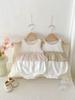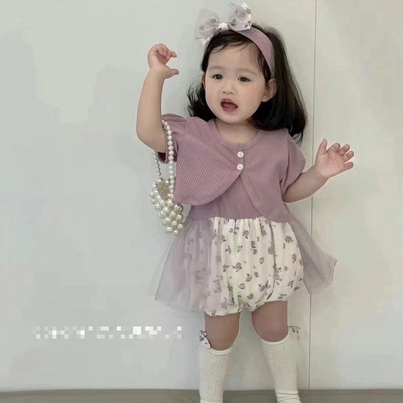 Conjunto de Verano de Dos Piezas para Bebé Niña Empalme Floral Bolsa de Tirantes Ropa para Pedos Cárdigan Ropa de Bebé Dulce Princesa