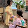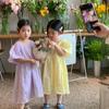 Vestido de verano para niña, nuevo estilo coreano, vestido de princesa con mangas abullonadas y encaje para niña, vestido dulce para niña pequeña