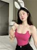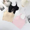 Camisola de verano de color liso para mujer, estilo Spice Girl, con cinturón, almohadilla para el pecho de una pieza, tirantes finos para el hombro, base adelgazante, prenda exterior de moda