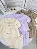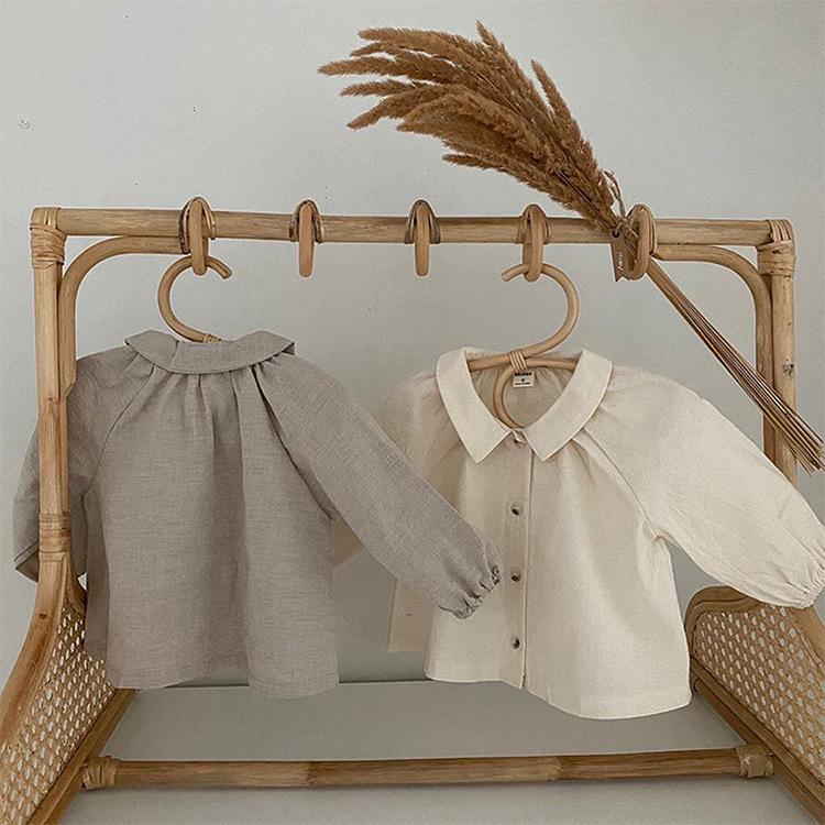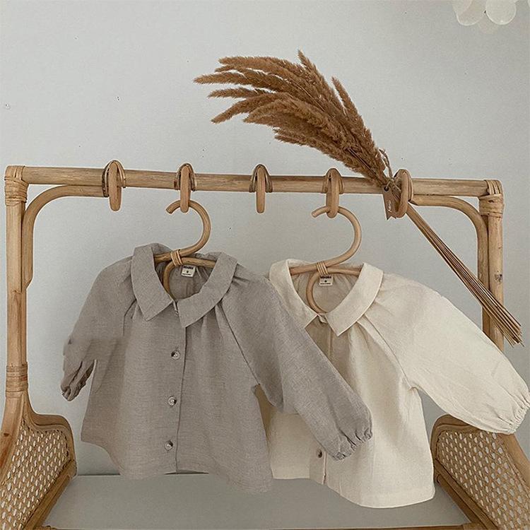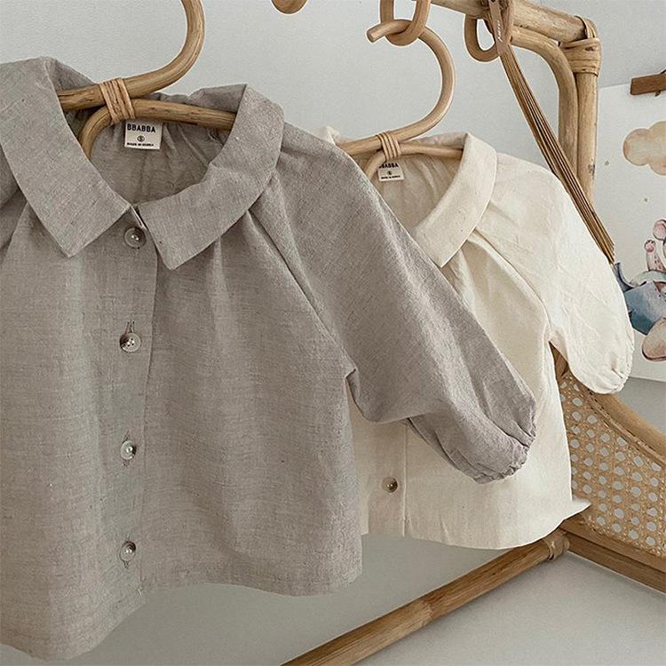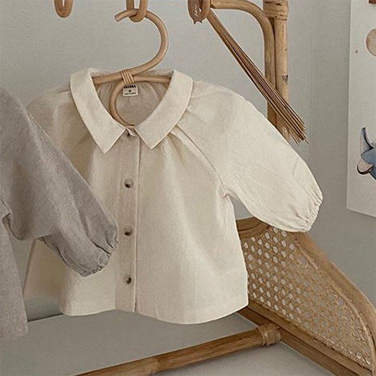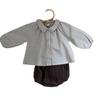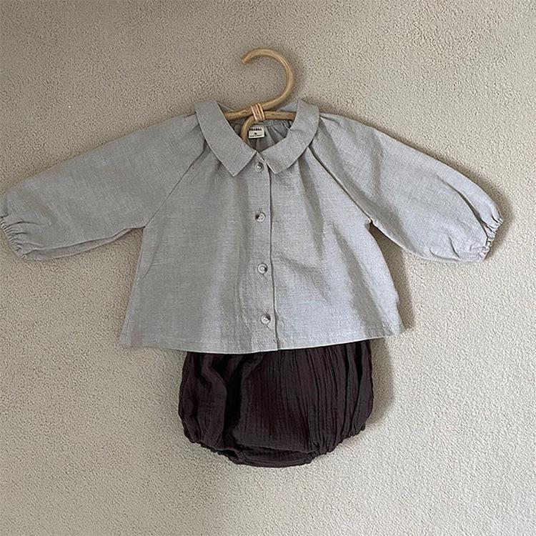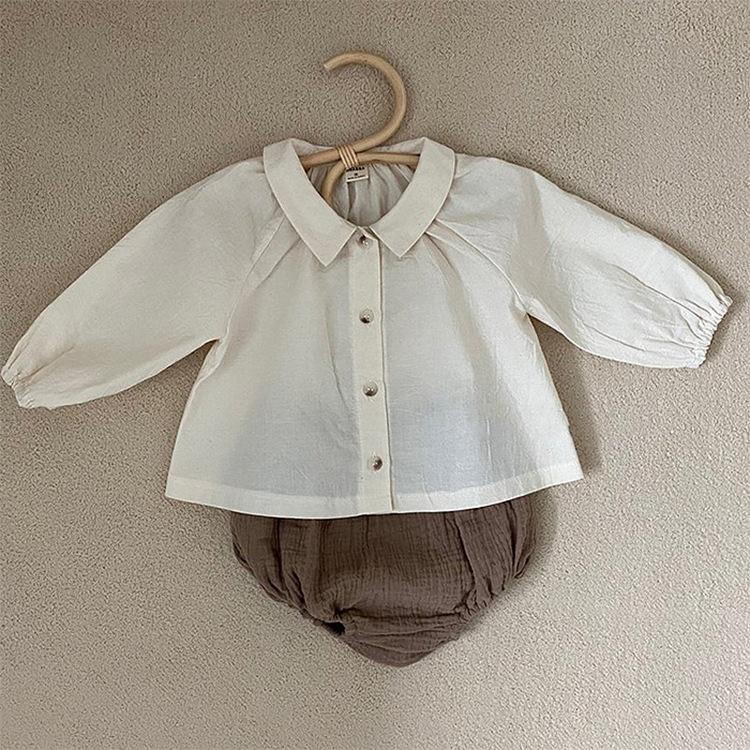 Traje Infantil de Manga Larga Estilo Coreano Primavera y Otoño Color Puro Solapa de Muñeca Camisa de Manga Larga + Shorts Set de Dos Piezas