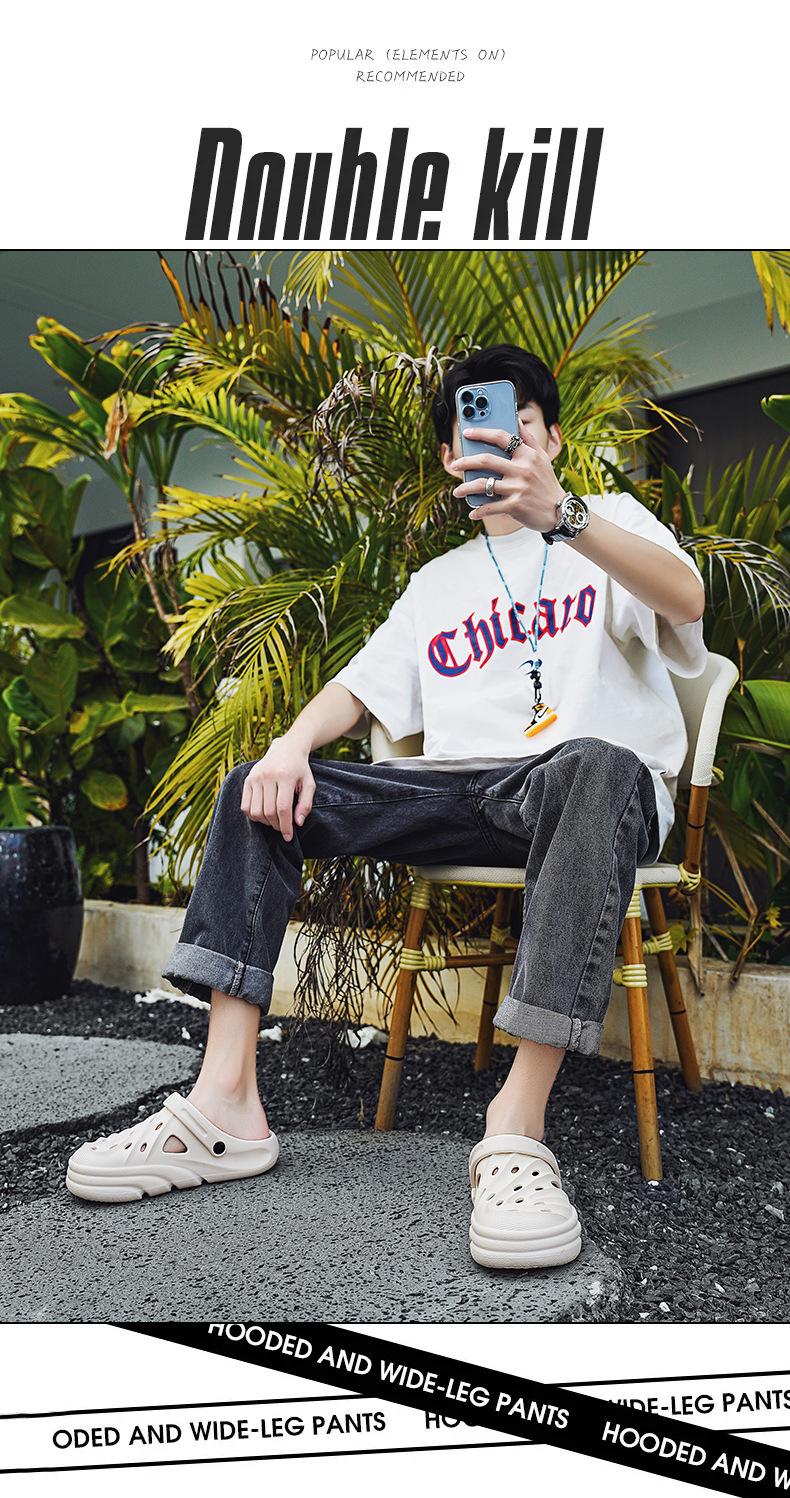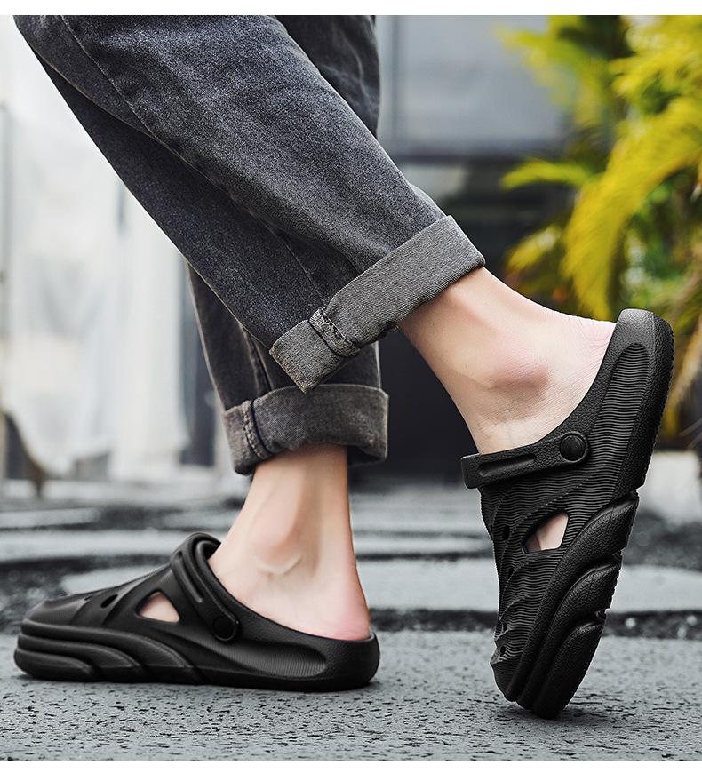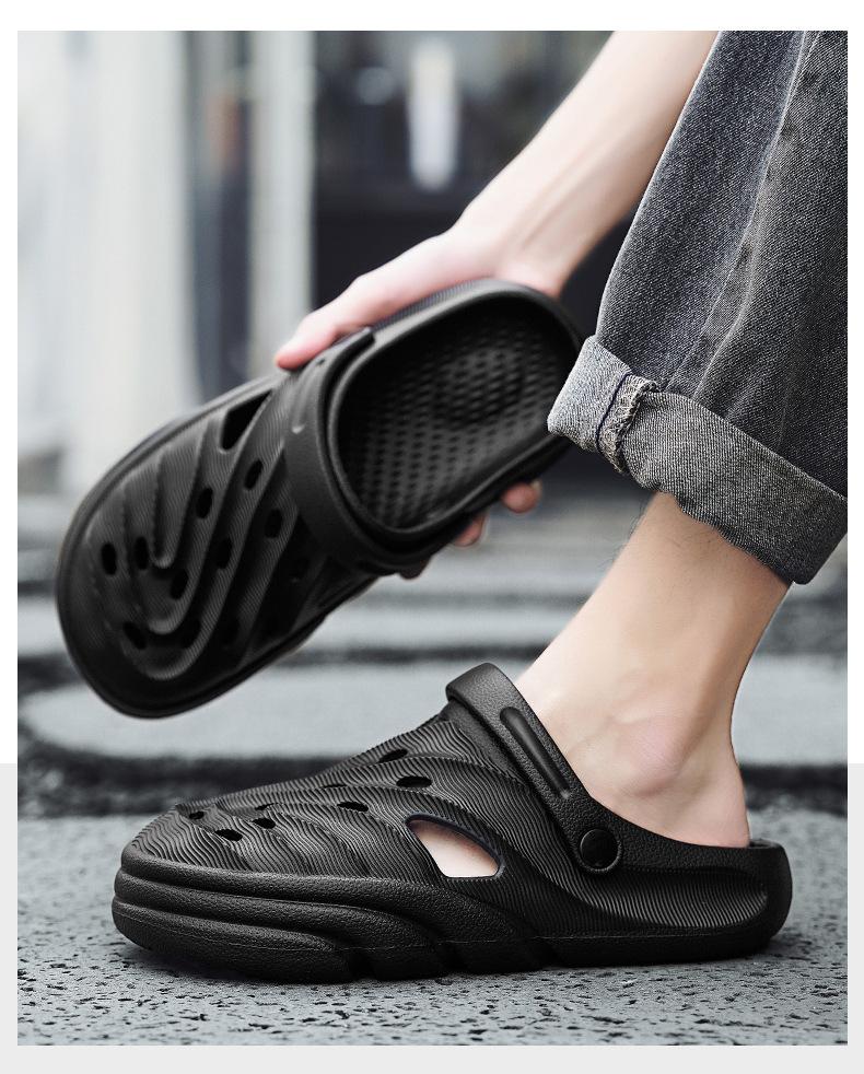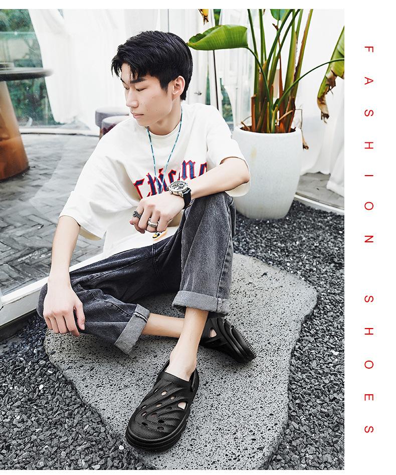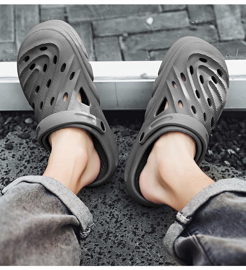Zapatos de agujeros de color sólido de gran tamaño transfronterizos Zapatos EVA para hombre 4.0 Zapatos de playa para exteriores Suela gruesa Altura aumentada Sandalias transpirables para hombre