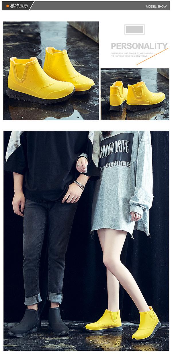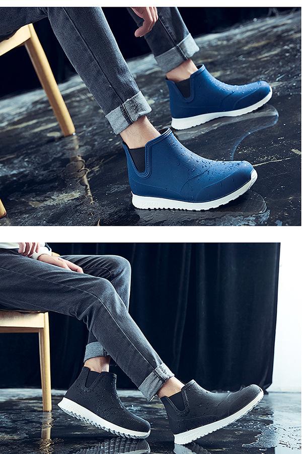 Botas de lluvia para hombre con boca elástica transfronteriza, botas de lluvia impermeables de tubo corto, zapatos de agua antideslizantes, zapatos de goma antideslizantes cómodos japoneses para mujer