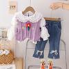 Purple lace Lucky Flower sweater fairy long sleeve three-piece set