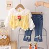 Yellow lace Lucky Flower sweater fairy long sleeve three-piece set