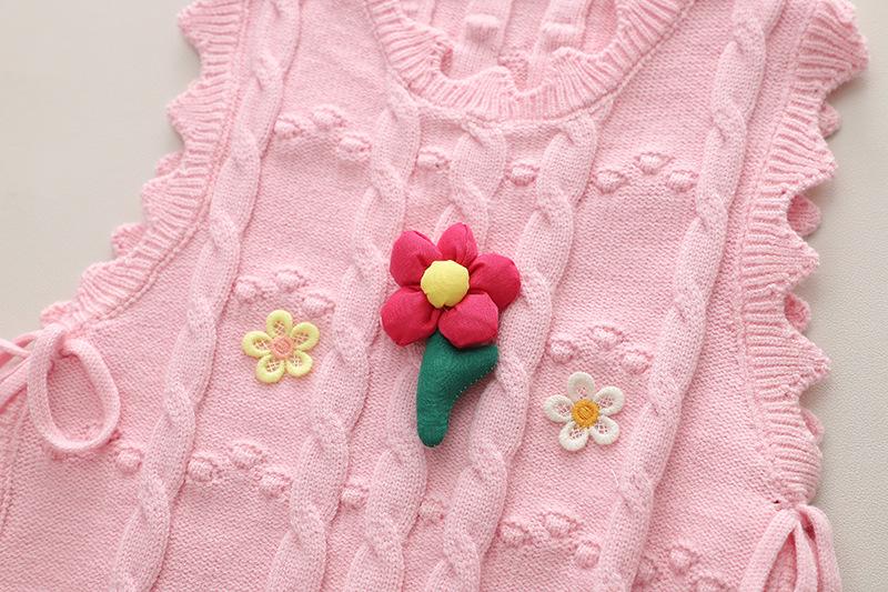 Pink lace Lucky Flower sweater fairy long sleeve three-piece set