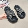 Nuevas Pantuflas Cruzadas de Moda de Estilo Chino con Suela Gruesa para Mujer, para Uso Exterior en Verano, Sandalias de Playa Antideslizantes de Plataforma Nuevas 2025