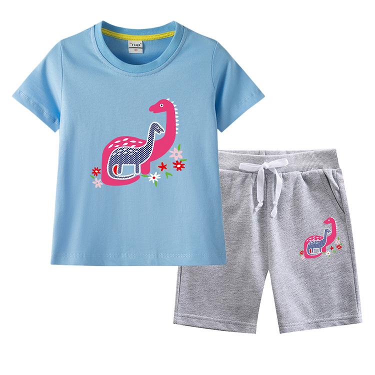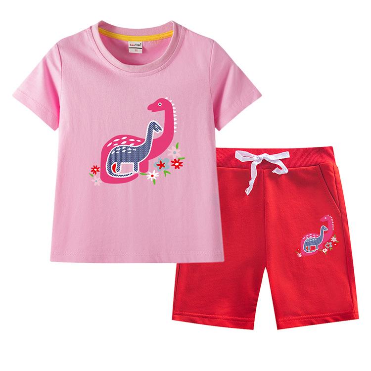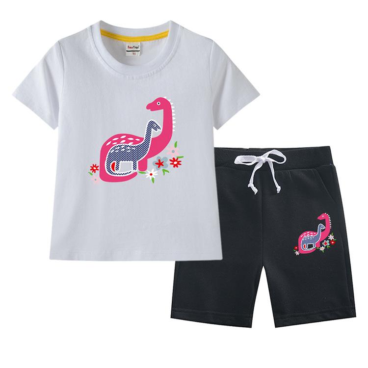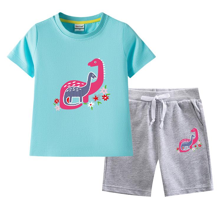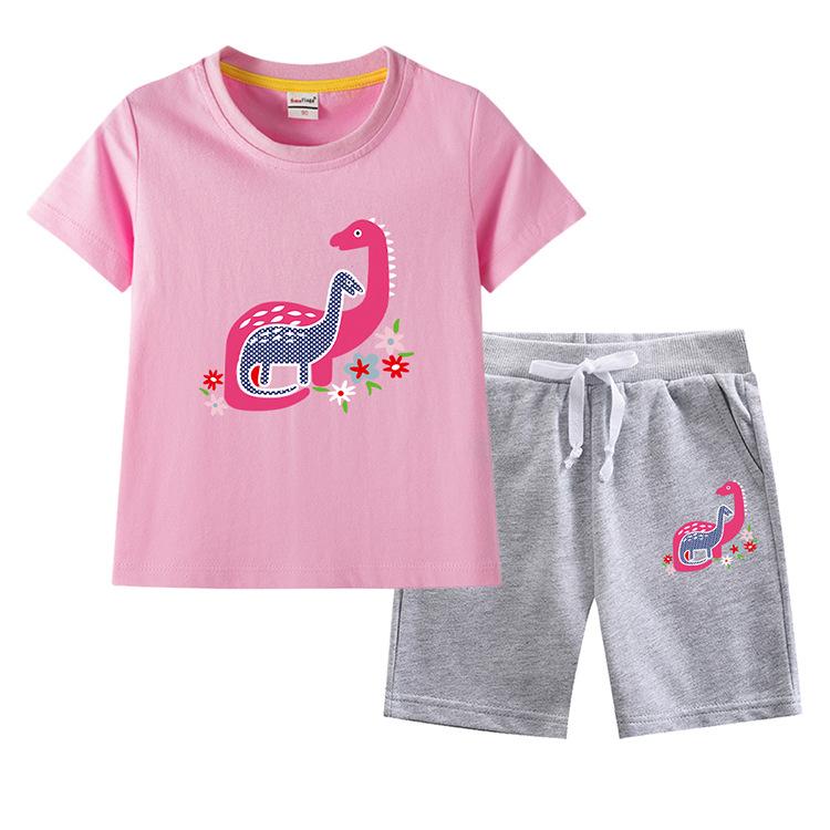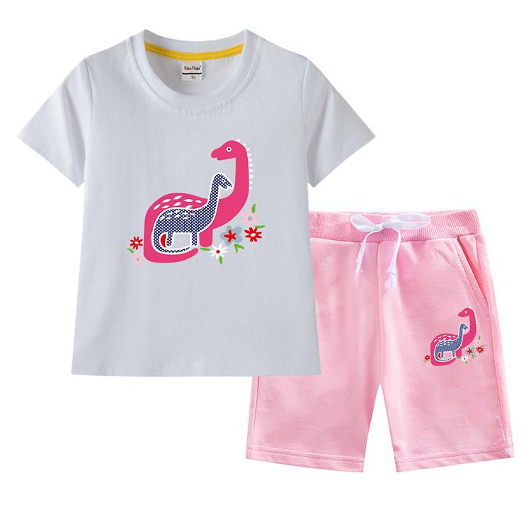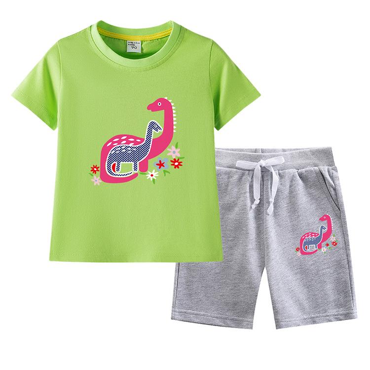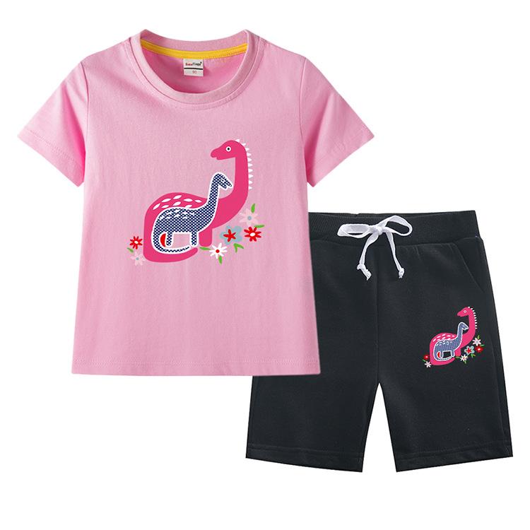 Traje de verano para niñas 2023, nuevo traje de dos piezas informal de algodón con dibujos de dinosaurios para niñas y bebés.