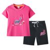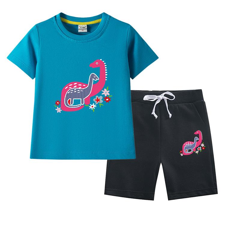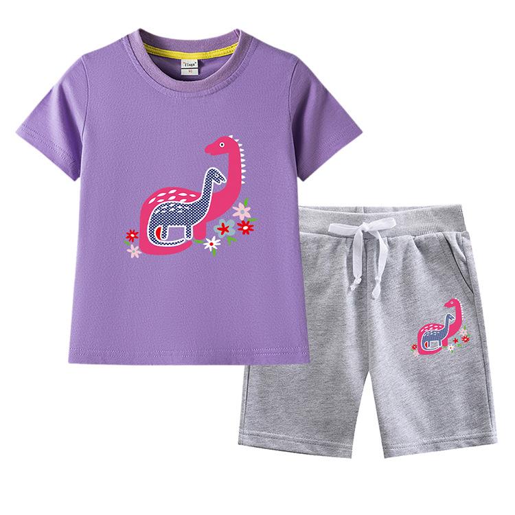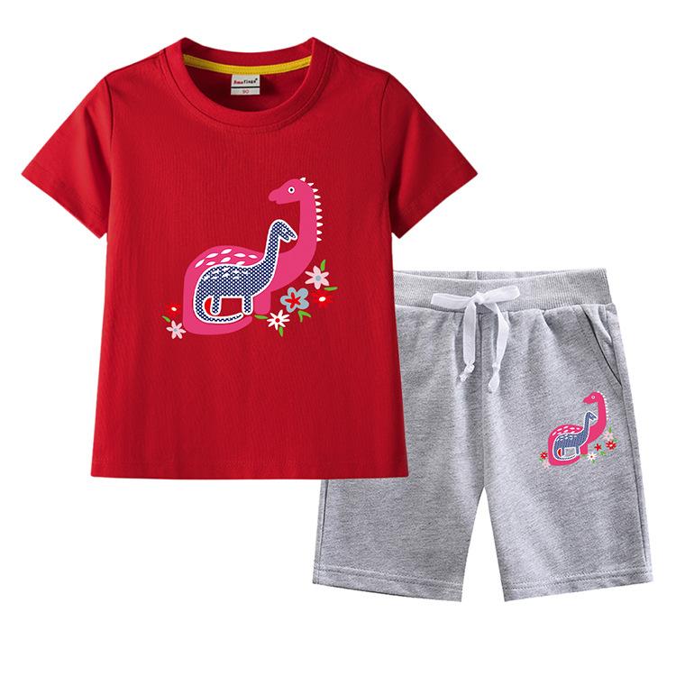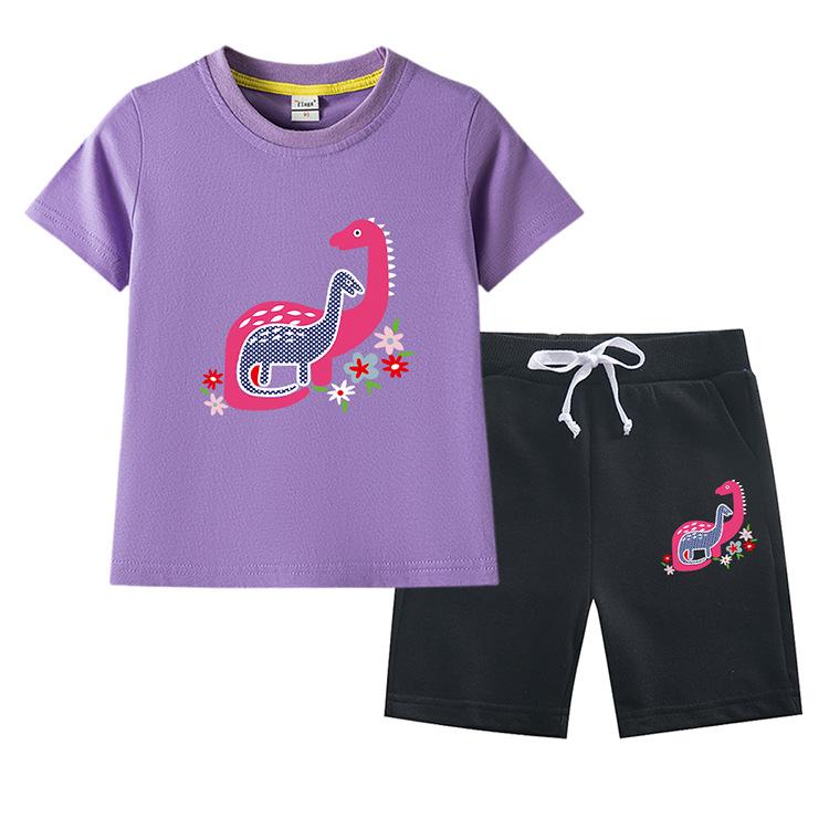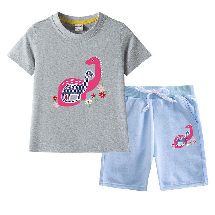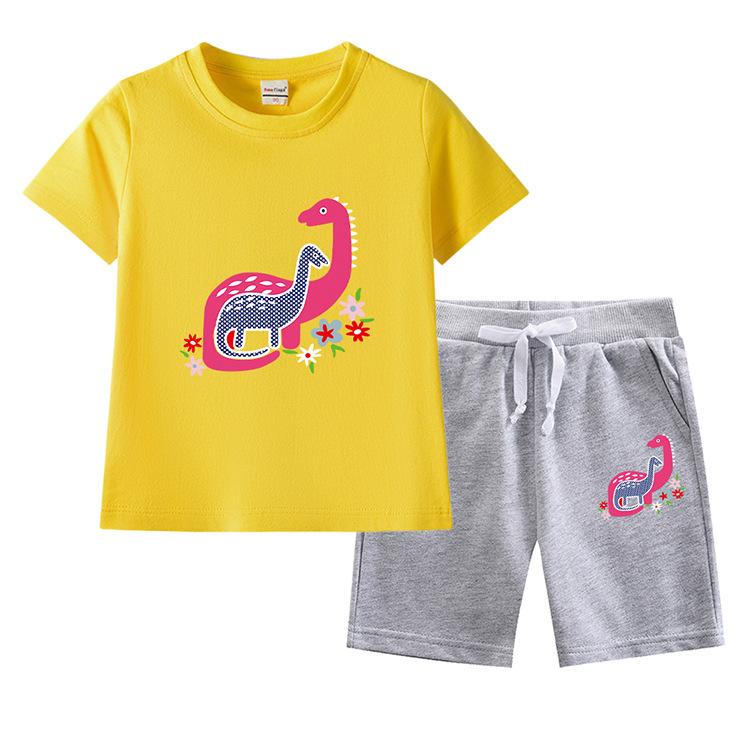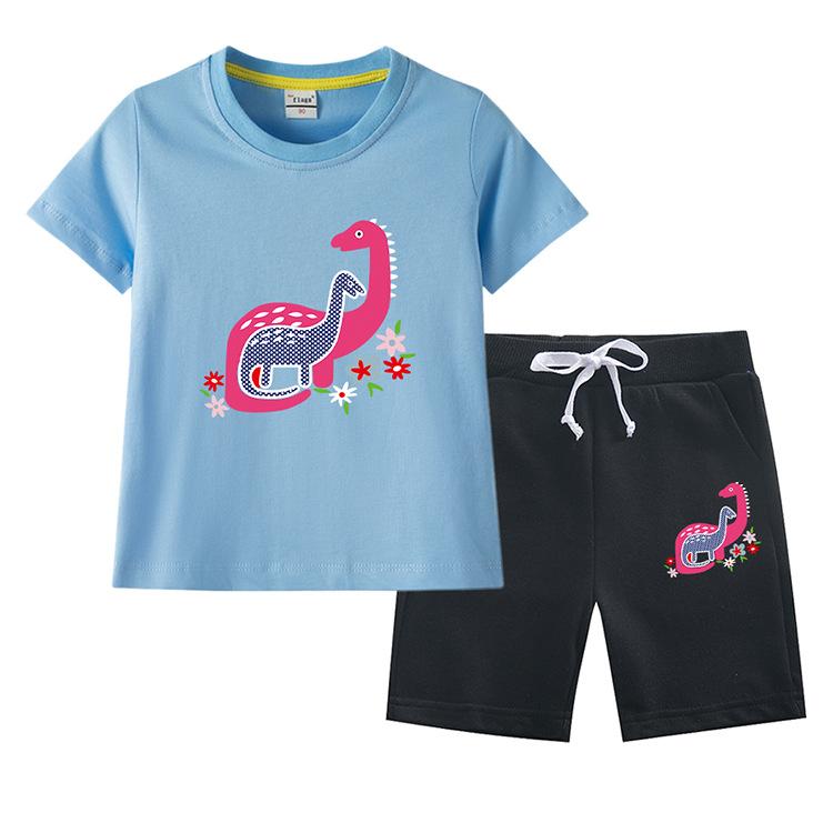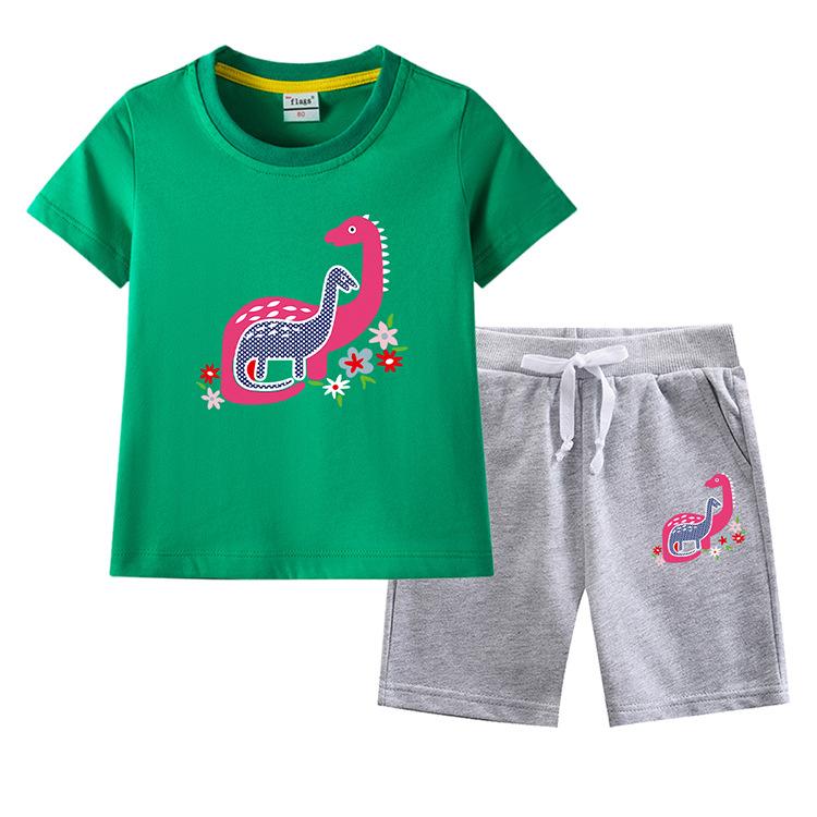 Traje de verano para niñas 2023, nuevo traje de dos piezas informal de algodón con dibujos de dinosaurios para niñas y bebés.