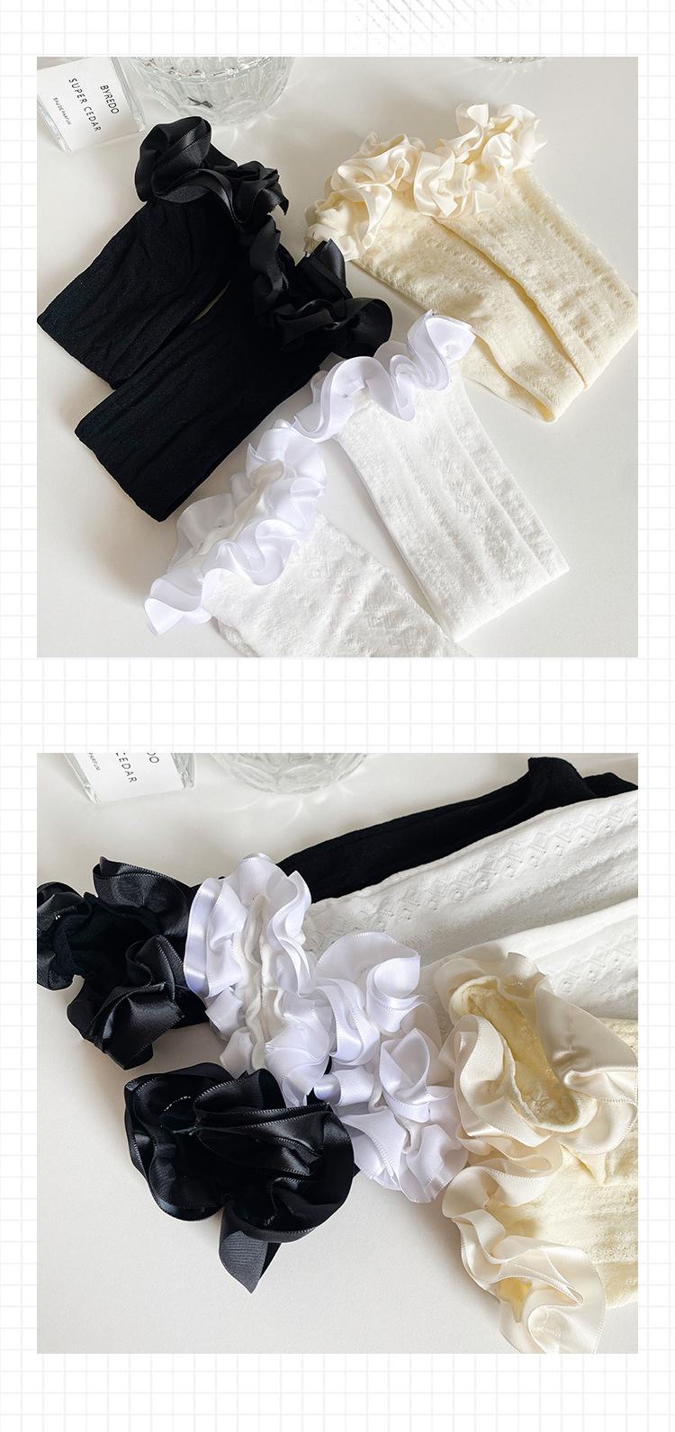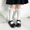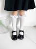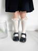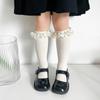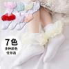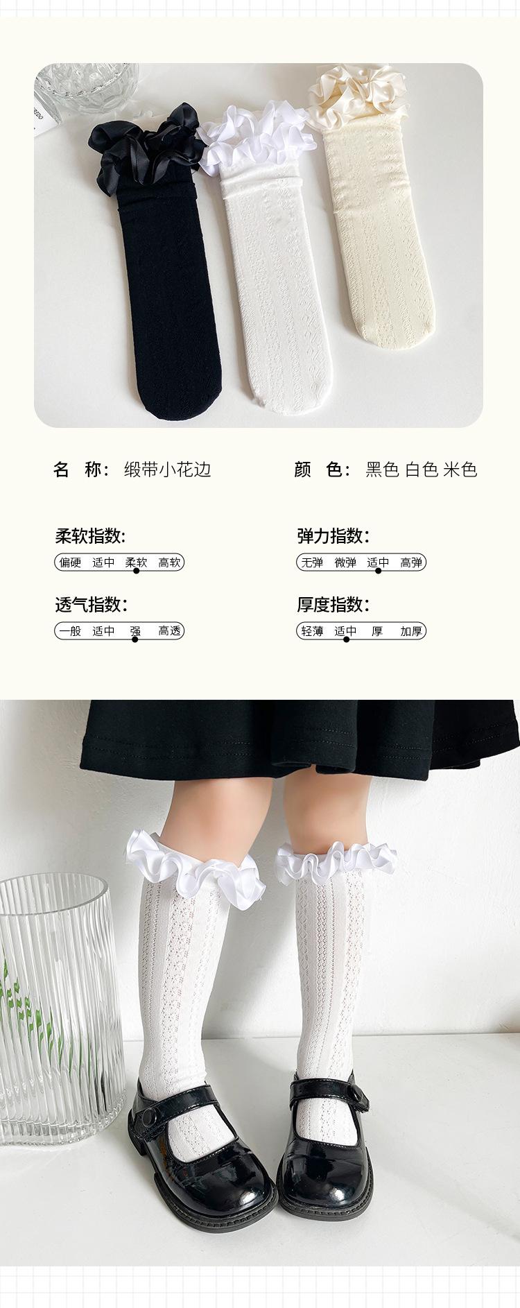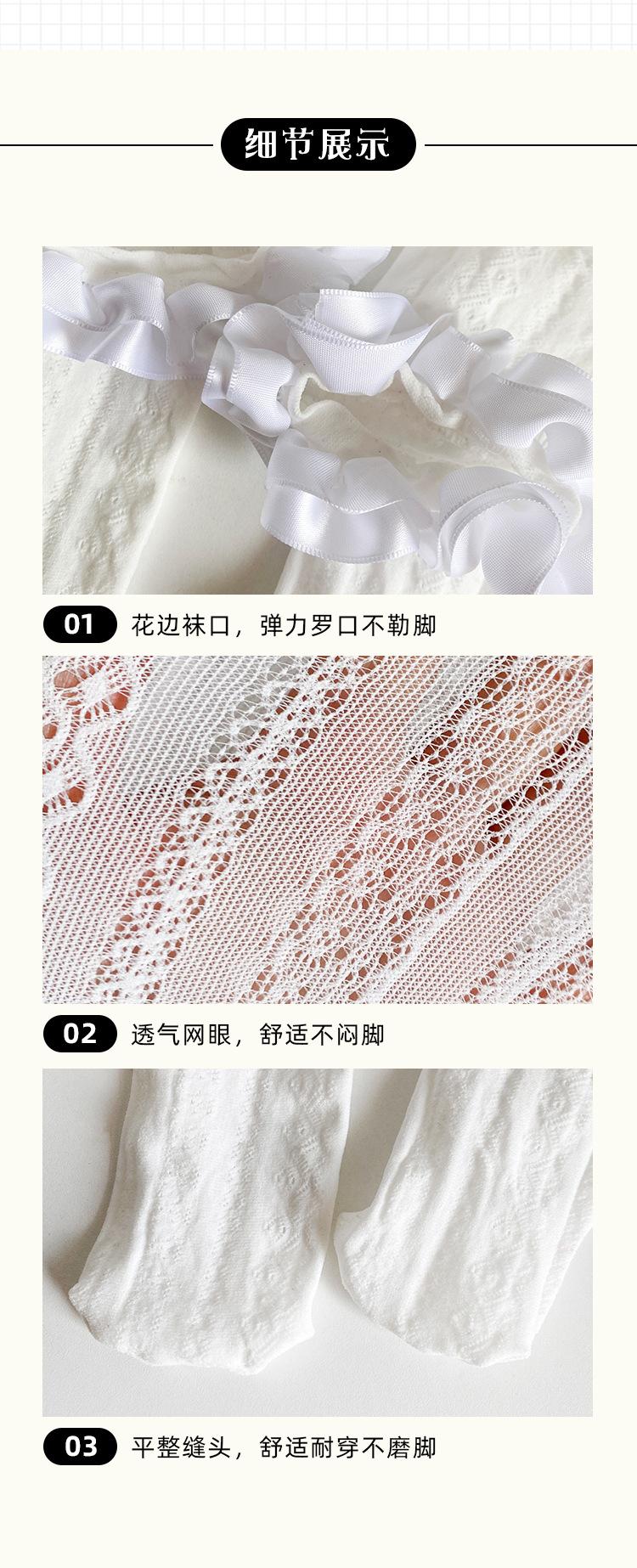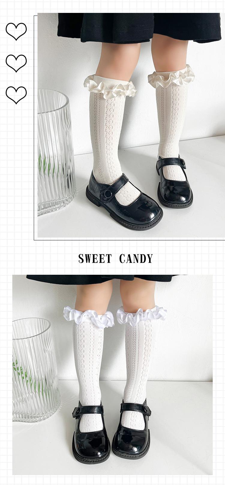 Calcetines finos de verano para niños, de color liso, con encaje, de tubo medio, de malla transpirable, en blanco y negro, huecos, de tubo recto, sin tacón, de princesa
