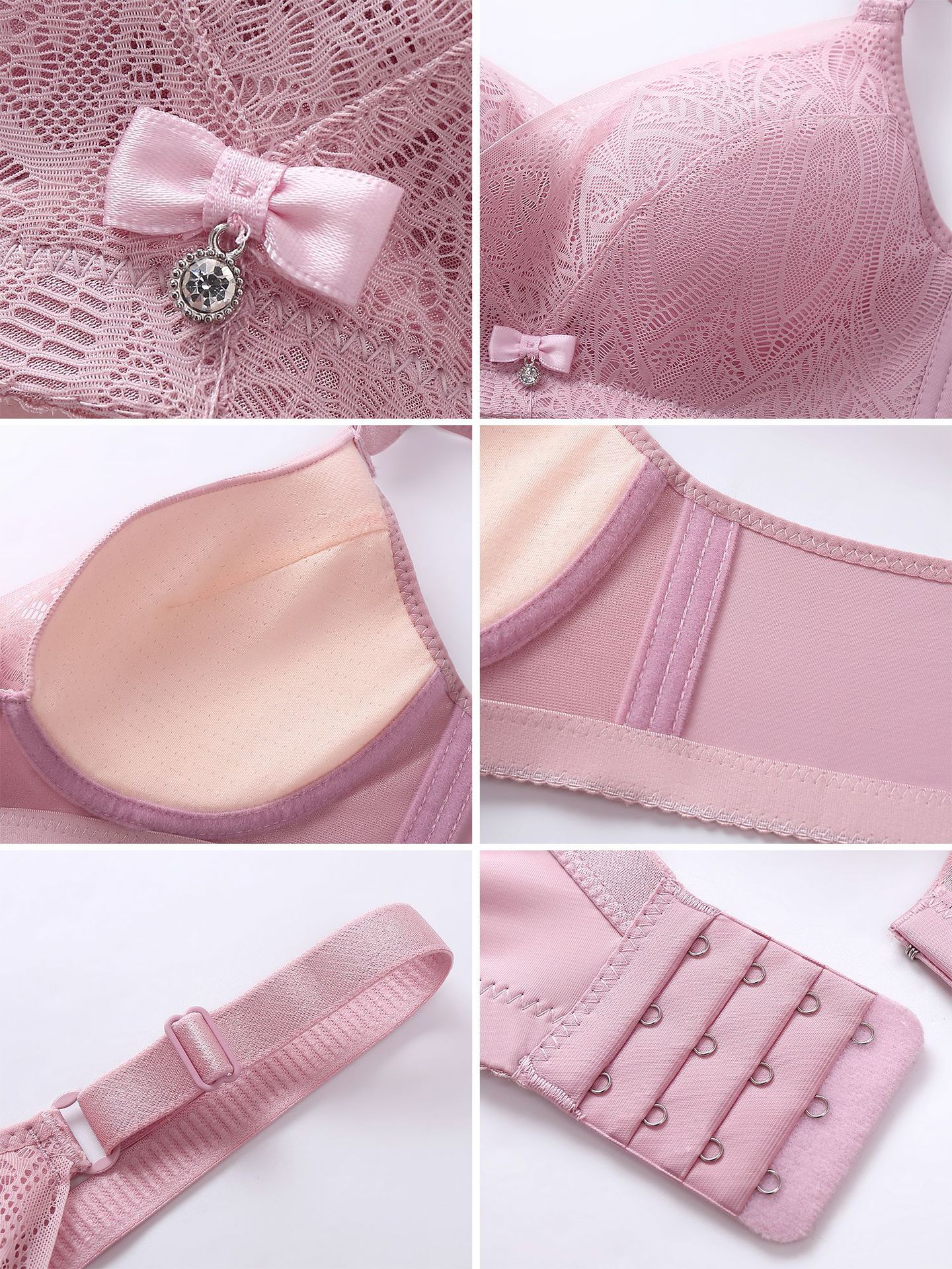 Nueva colección de sujetadores push up de encaje con pecho grande, sencillos, transpirables, inalámbricos y de tamaño pequeño, que son agradables para la piel y sexys para novias.