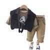 Traje de primavera y otoño para niño, estilo occidental, 2024, nuevo cárdigan de otoño para bebé, chaleco de tres piezas, traje de suéter para niños de estilo coreano