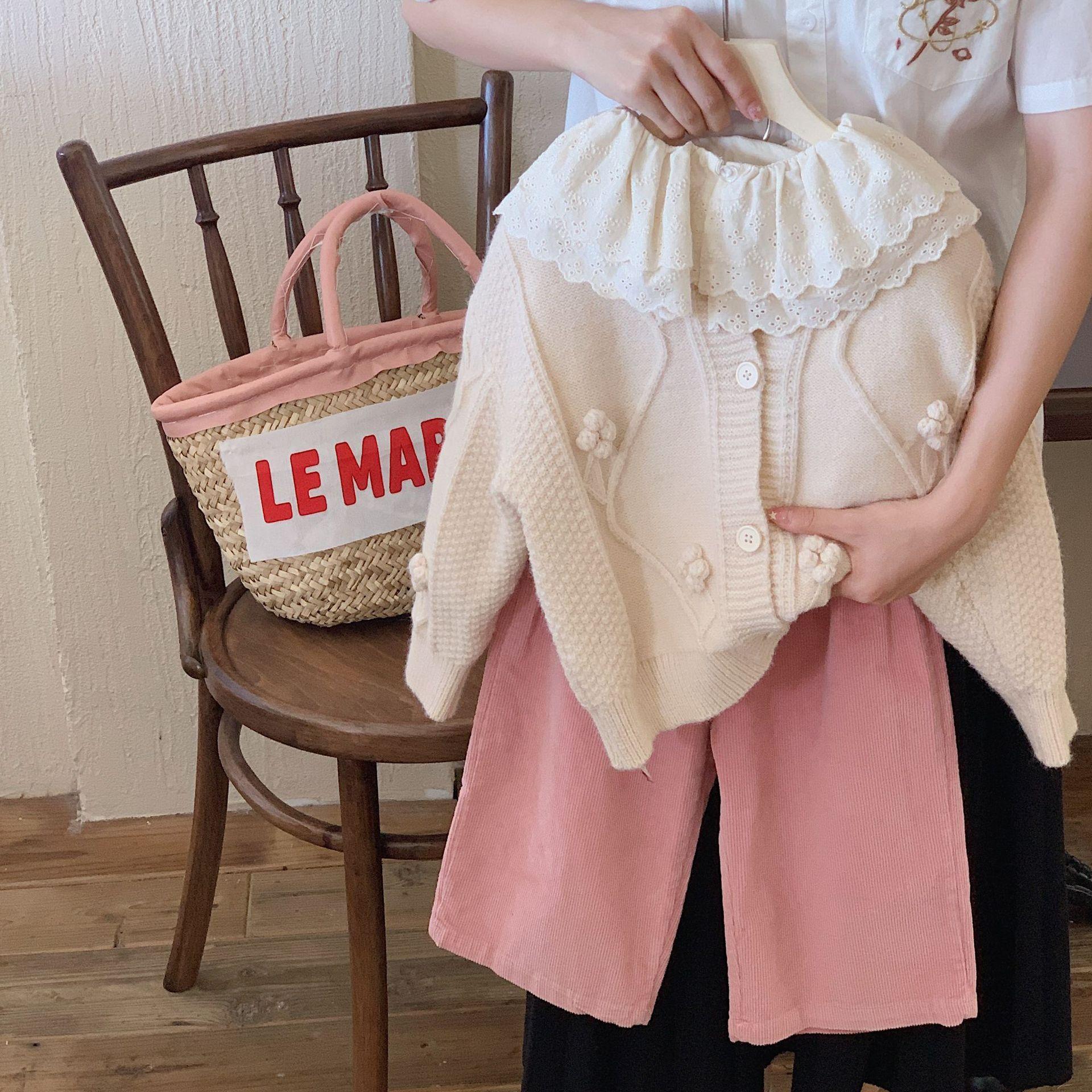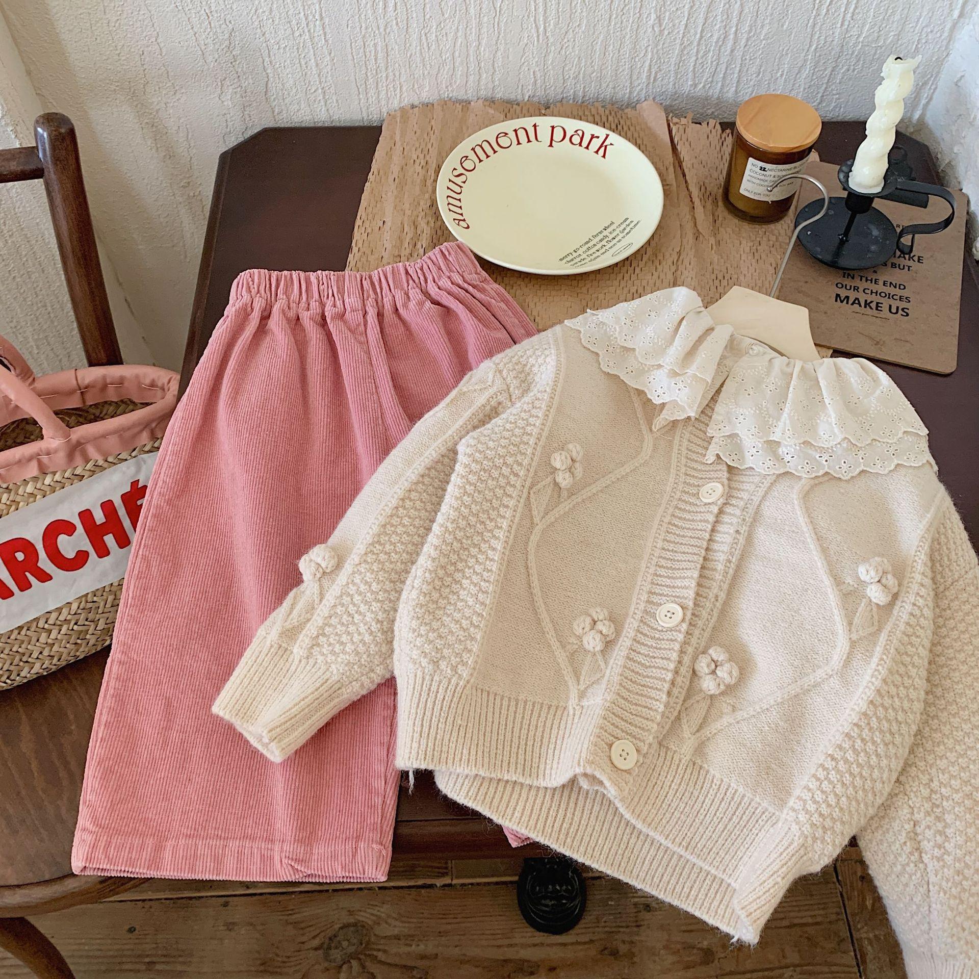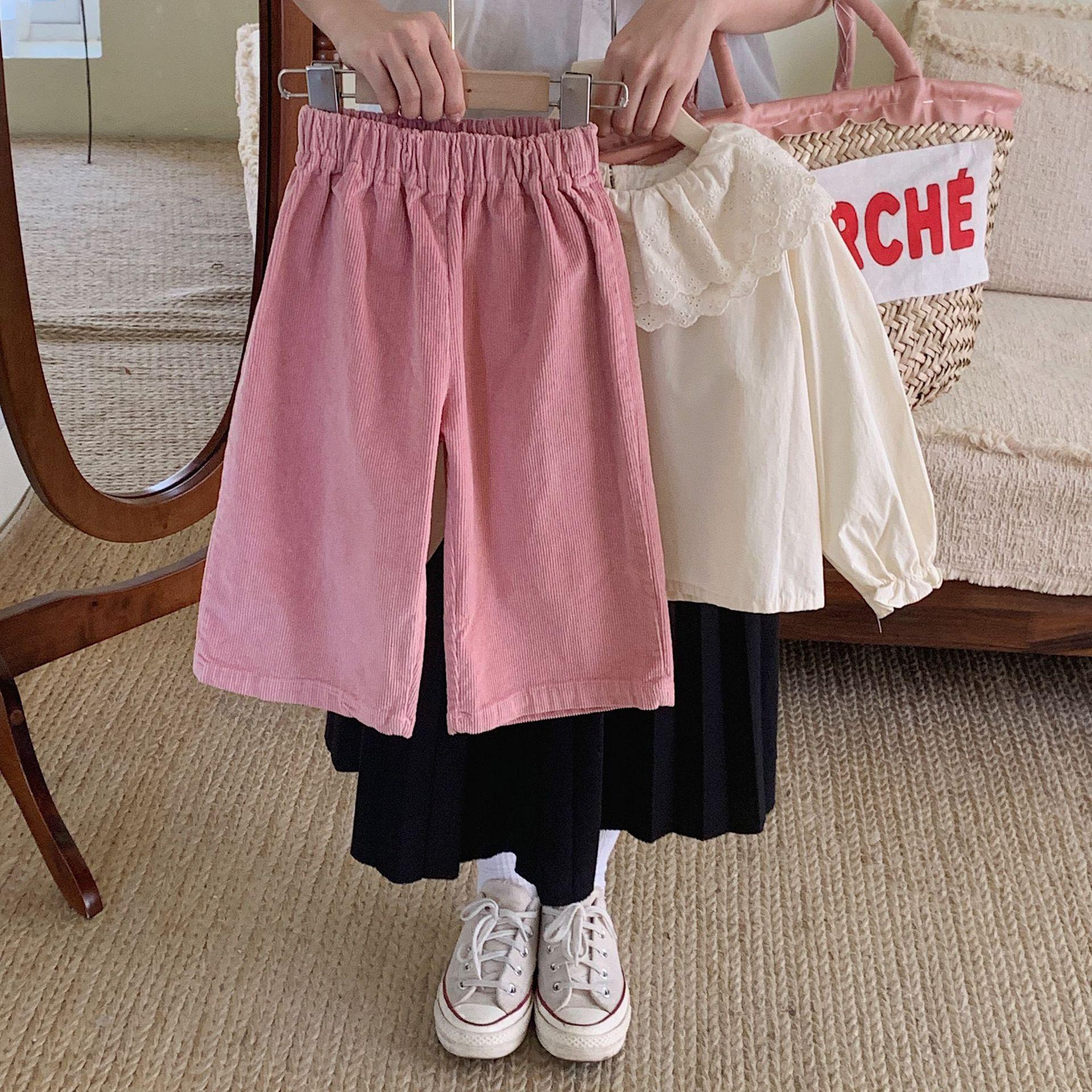 Pantalones para niñas, primavera 2024, nuevos pantalones coreanos de pierna ancha para niñas, pantalones de pana para bebés, pantalones de otoño