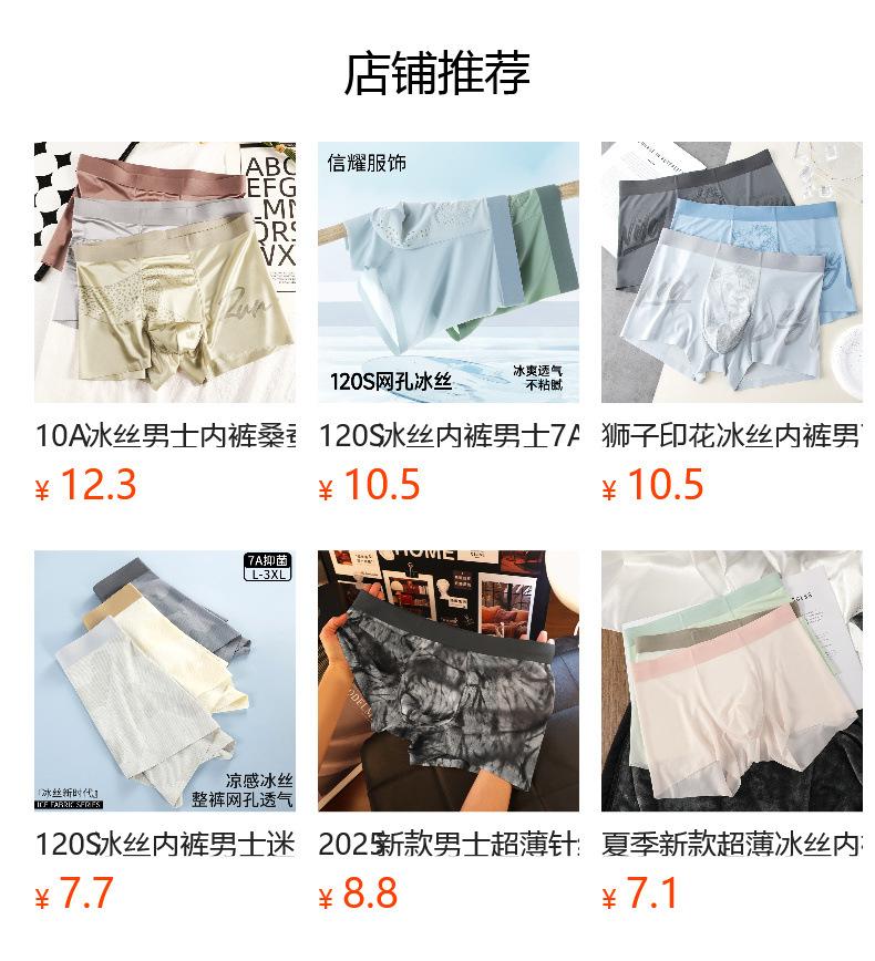 Ropa interior de seda de hielo 120 para hombre, de verano, de secado rápido, de talla grande, cómoda, sin costuras, 7A, antibacteriana, con entrepierna tipo bóxer