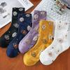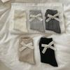 Calcetines de tubo de algodón de primavera y verano, blancos, sencillos, versátiles, con vetas verticales, calcetines con orejas de madera y lazo, calcetines finos para mujer