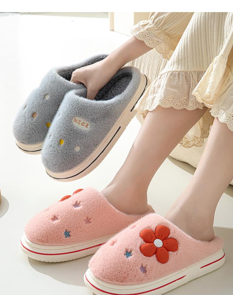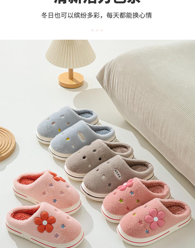 Pantuflas de algodón populares en línea para pareja, para el hogar, para interiores, antideslizantes, de invierno, gruesas, cálidas, de lana, venta al por mayor, entrega de una pieza
