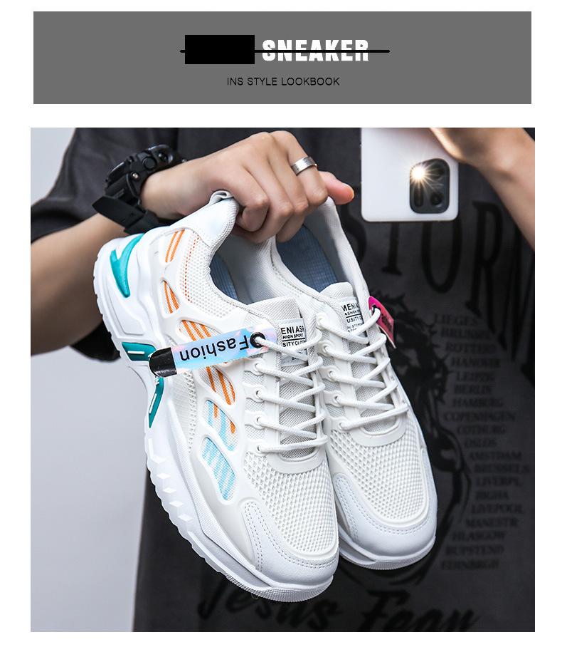 Zapatos de otoño para hombre, nuevos zapatos deportivos de malla transpirable, zapatos blancos de suela gruesa que combinan con todo, zapatos casuales de moda para Torre