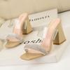 318-11 Sandalias de moda de estilo europeo y americano con punta cuadrada tejida, tacón grueso, punta abierta, tacón alto, tiras, zapatillas para mujer