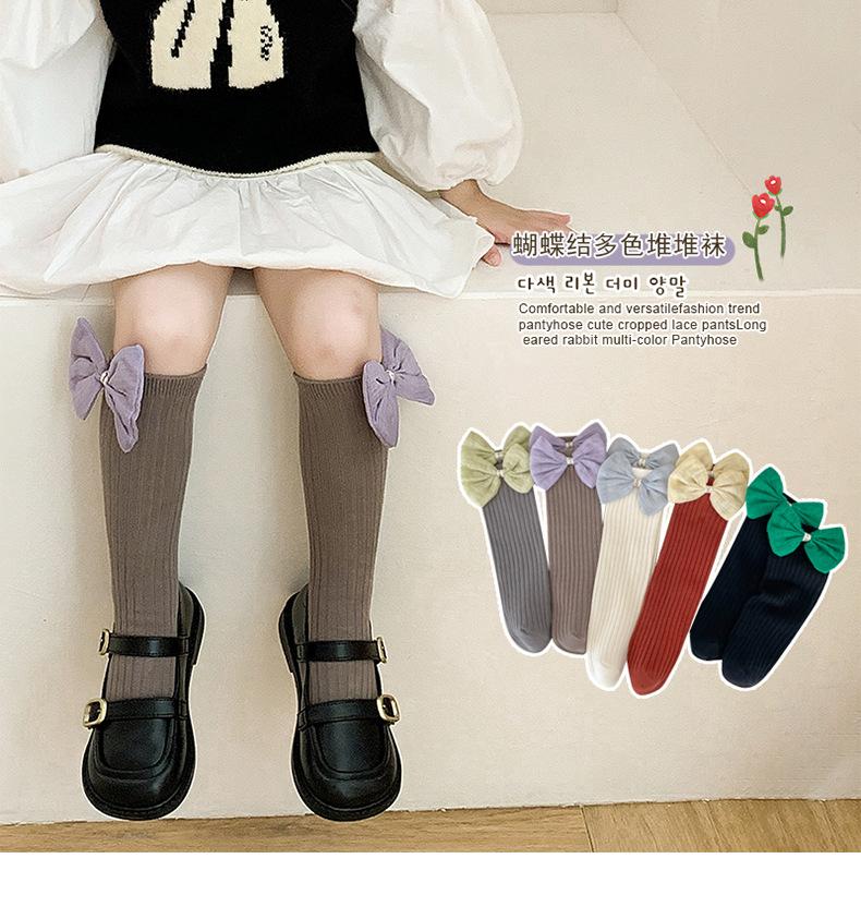 Calcetines de otoño e invierno para niños, color macarrón, lazo, calcetines de felpa de princesa para niñas al por mayor, calcetines de tubo para niñas, niños grandes